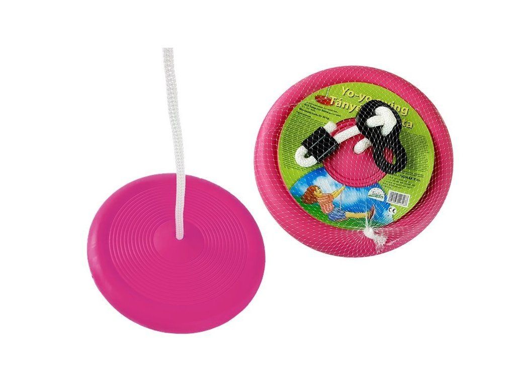 Dětská houpačka je perfektní lákadlo pro hru venku. Bude ideální pro trénink síly rukou, rozvoj rovnováhy a břišních svalů. Houpačka má tvar talíře o průměru 28 cm. Obsahuje pohodlné sedátko, silné lano a prvek pro zavěšení houpačky.