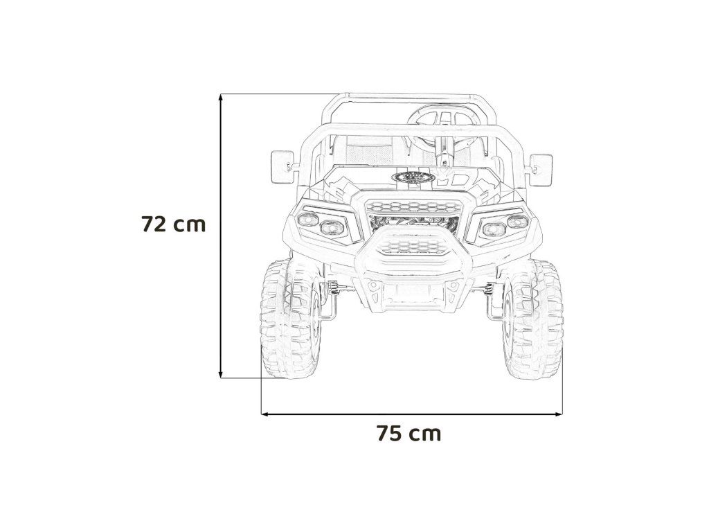 - Vozidlo: 118 × 75 × 72 cm (d × š × v)