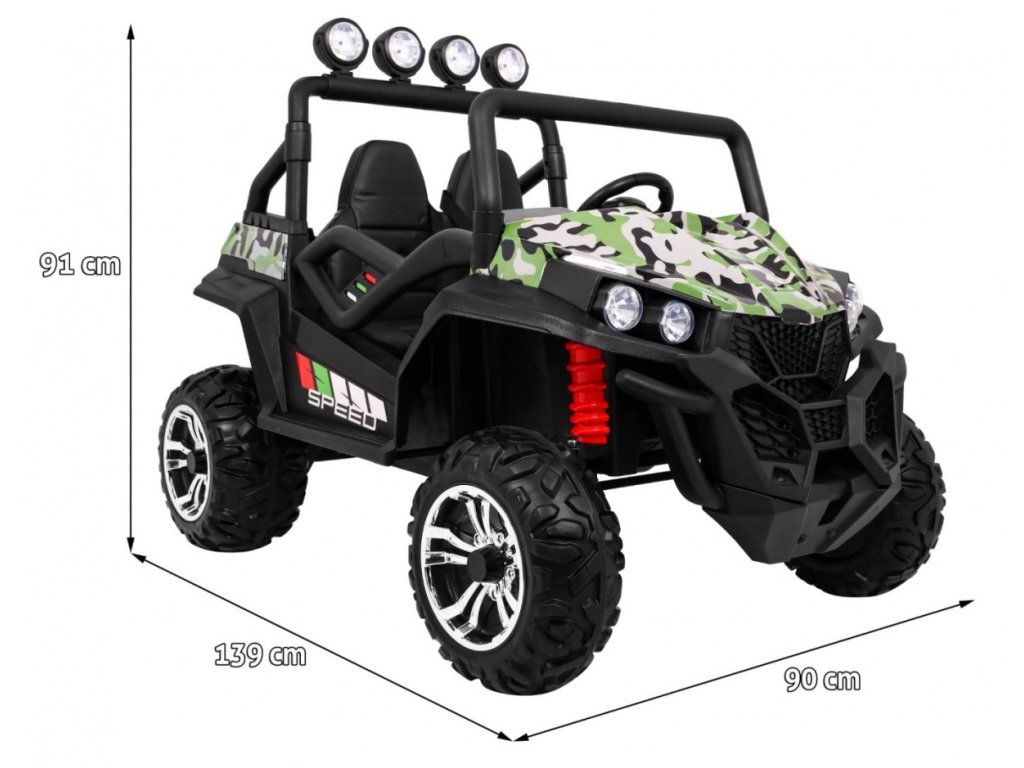 Dětské elektrické autíčko Buggy Lift Strong přijíždí na měkkých pěnových Eva kolech, která společně s výkonným elektrický motorem 4x45W a baterií 24V 7Ah zvládnou náročné typy terénu.