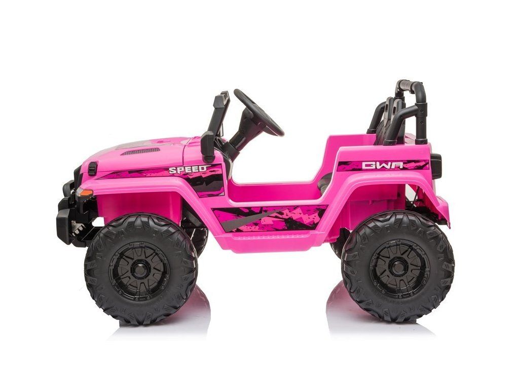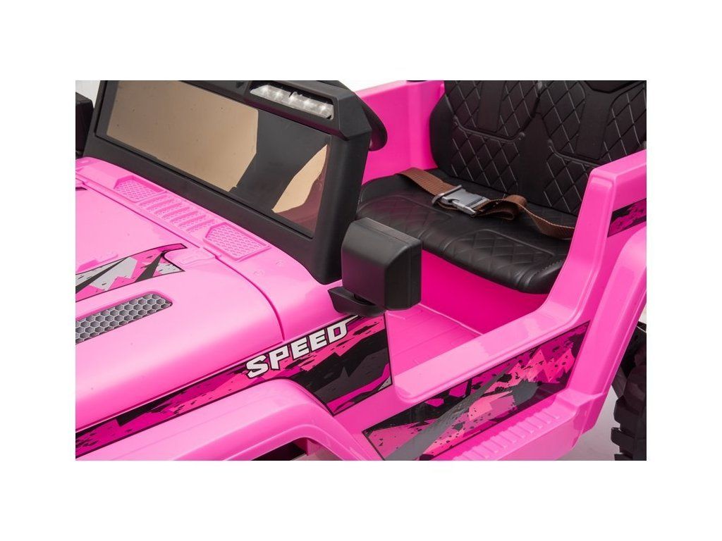 Dětské elektrické autíčko jeep Speed pro všechny milovníky terénních vozidel. Do pohodlné sedačky z měkké ekologické kůže se mohou posadit všechny děti s nosností do 25 kg. Pěnová Eva kola jsou tichá a přizpůsobí se nejen zpevněným typům povrchů. Do terénu vyrazíte rychlostí okolo 5,5 km/h.