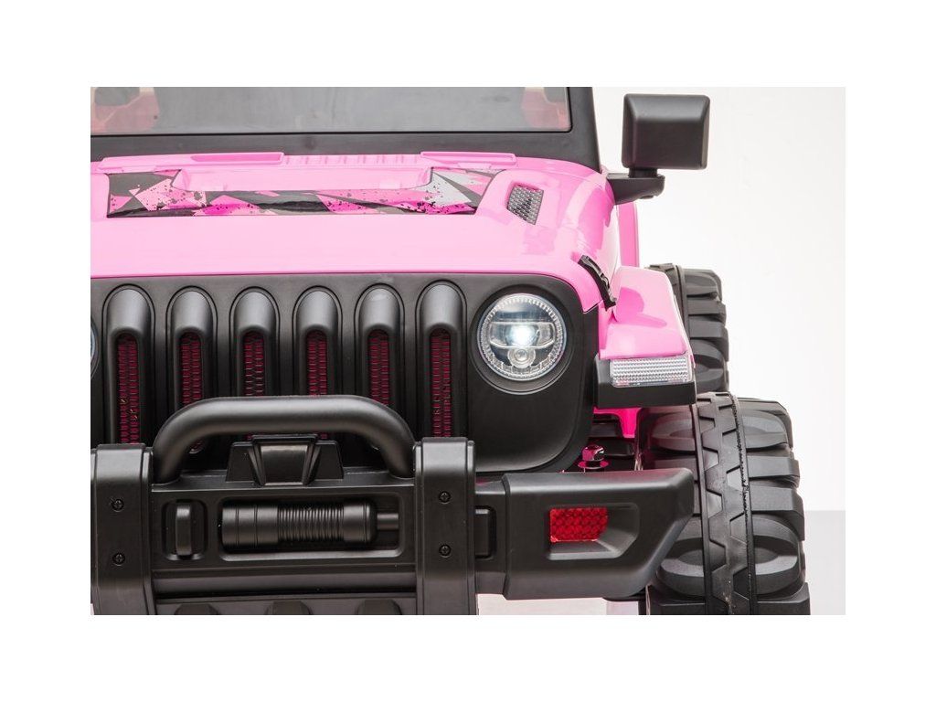 Mezi skvělé vlastnosti autíčka patří možnost propojení hudebního panelu pomocí Bluetooth či puštění si hudby ze své oblíbené rádiové stanice. Jeep je vybaven předními i zadními LED světly.