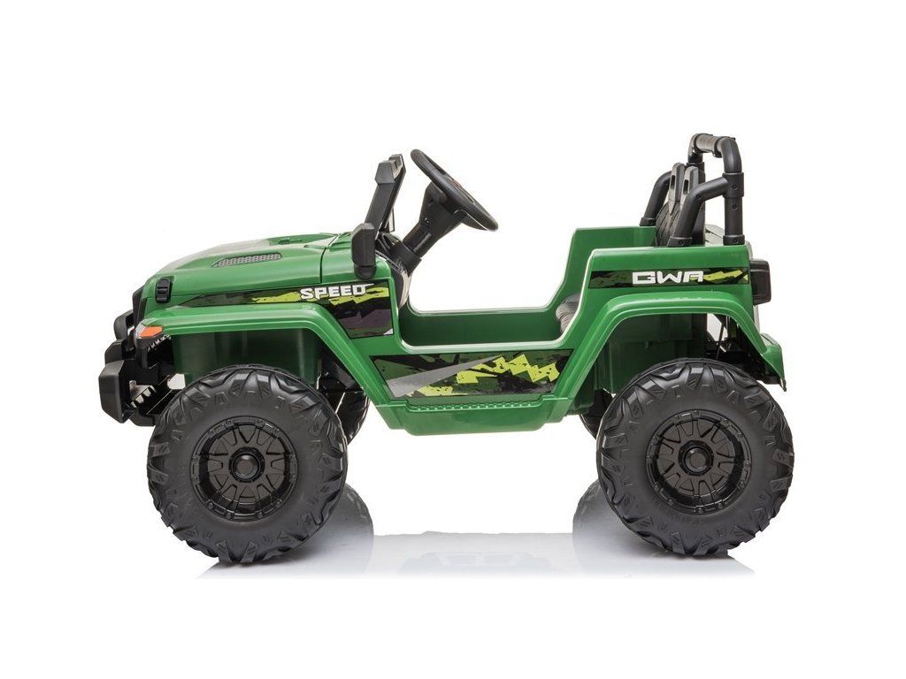 Dětské elektrické autíčko jeep Speed pro všechny milovníky terénních vozidel. Do pohodlné sedačky z měkké ekologické kůže se mohou posadit všechny děti s nosností do 25 kg. Pěnová Eva kola jsou tichá a přizpůsobí se nejen zpevněným typům povrchů. Do terénu vyrazíte rychlostí okolo 5,5 km/h.