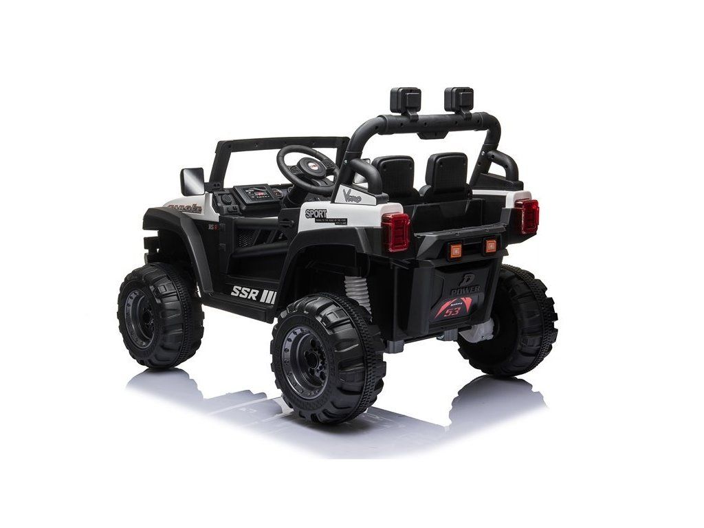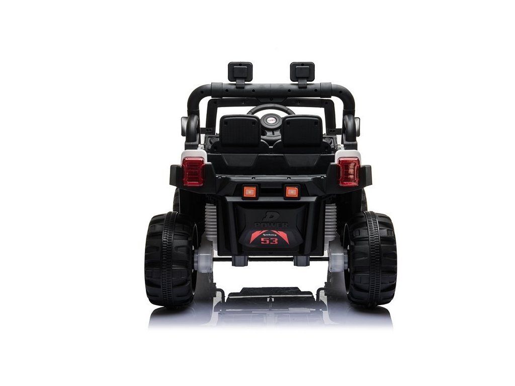 Mezi skvělé vlastnosti autíčka patří možnost propojení hudebního panelu s MP3 zařízením, USB či SD kartou. Jeep je vybaven předními LED světly.