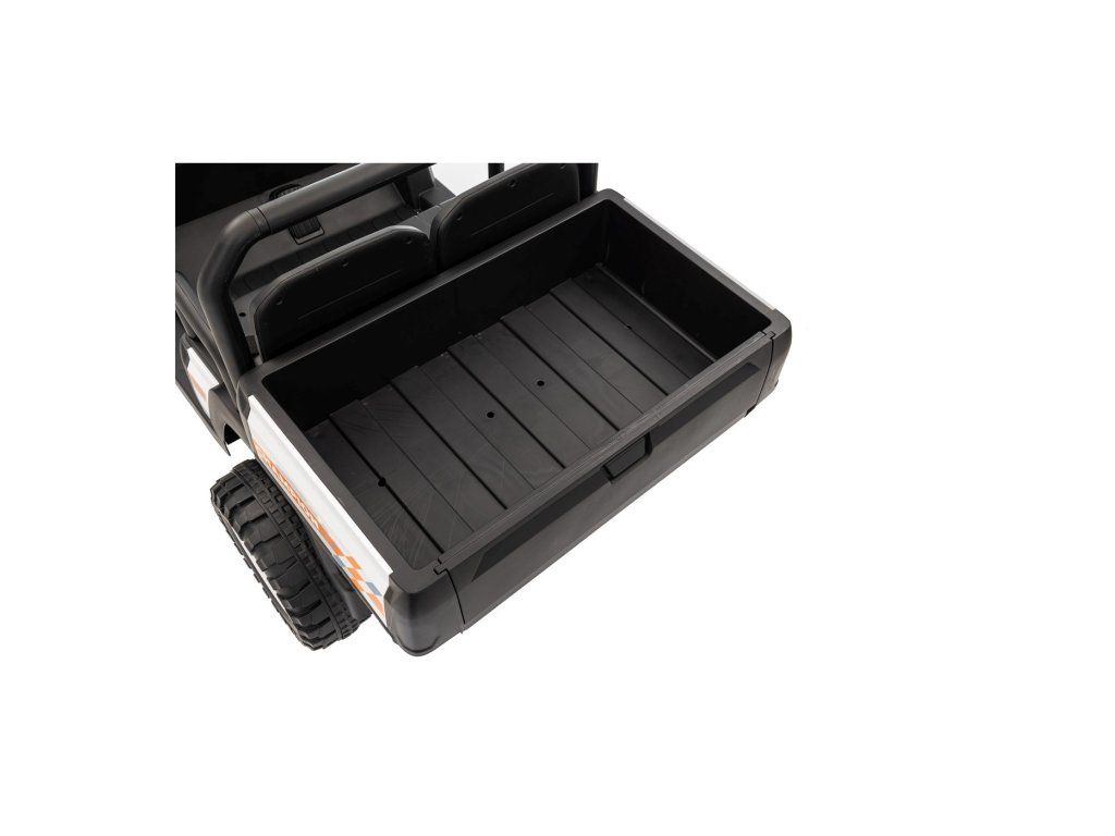 Pro bezpečnost menších dětí je součástí dálkové ovládání 2,4 GHz s funkcí nouzového zastavení a volbou ze 3 rychlostí. Samozřejmostí je funkce „soft start“ pro plynulý rozjezd.