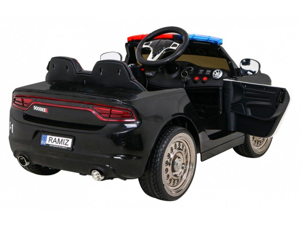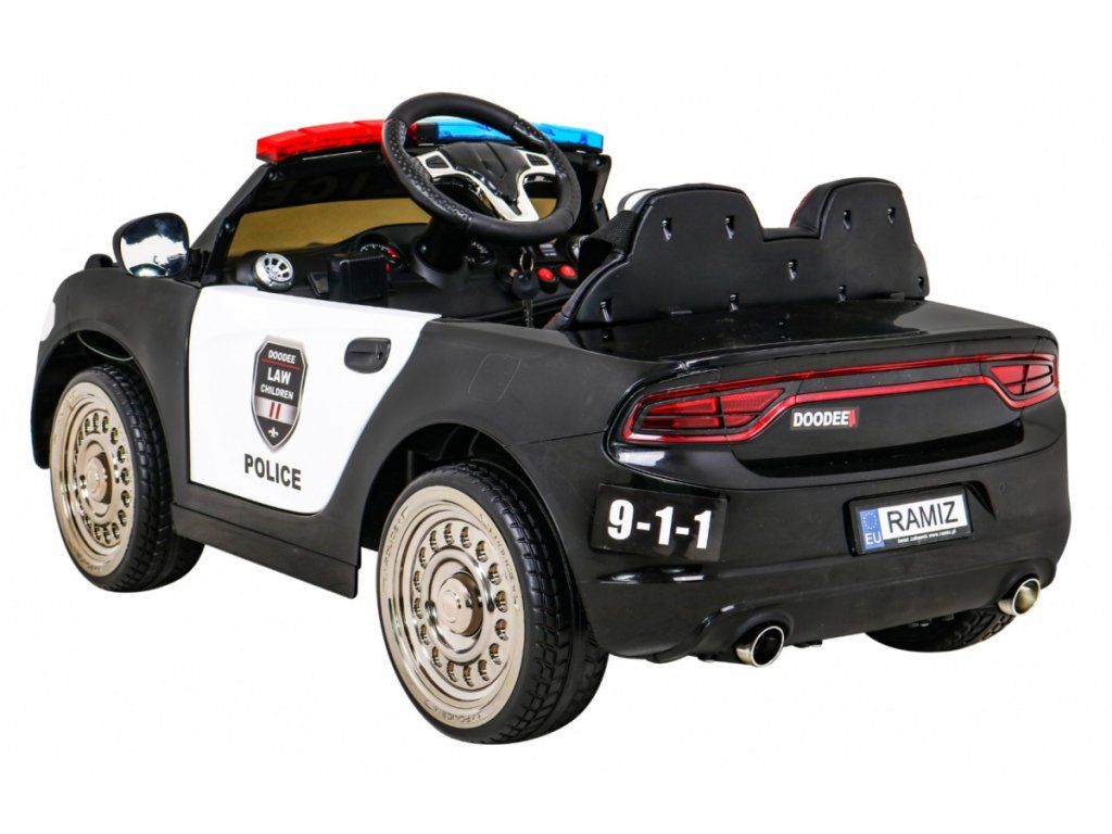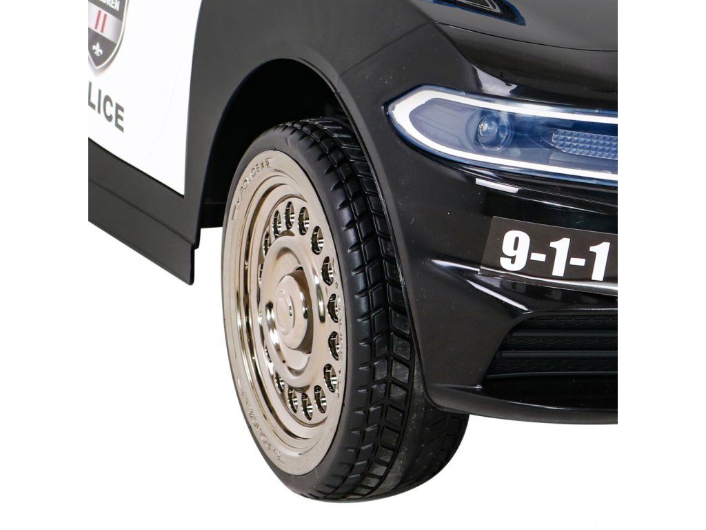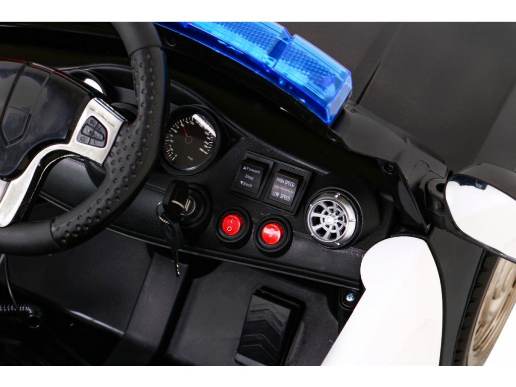 Dětské elektrické autíčko Super-Police přijíždí na pěnových Eva kolech, která jsou tichá a zvládnou nejen zpevněný typ povrchu. Autíčko se nastartuje pomocí klíčů, při čemž auto vydává realistické zvuky motoru.
