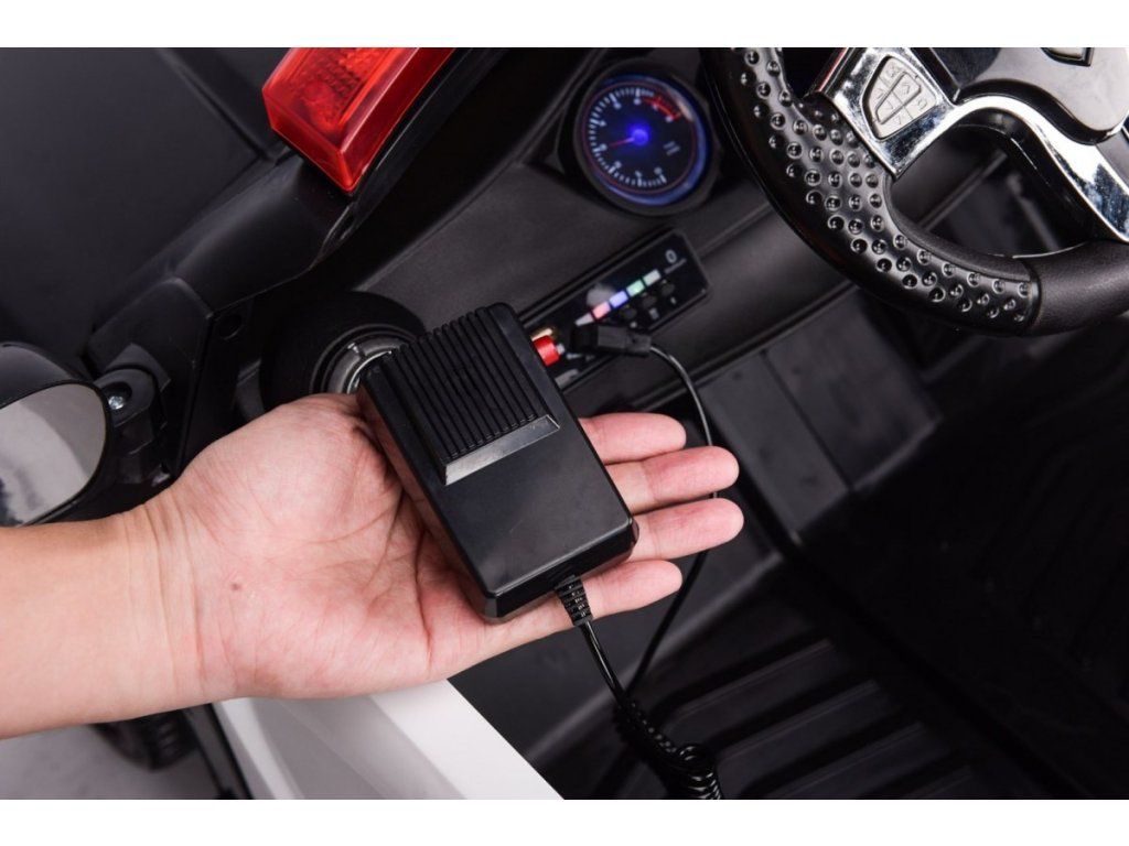 Interiér vozidla je vybaven pohodlnou sedačkou z měkké ekologické kůže s bezpečnostními pásy. Na levé straně přístrojové desky se nachází hudební panel se vstupy USB a MP3. Jízdu jistě zpříjemní předem nahrané melodie, které se aktivují stisknutím tlačítek na volantu. Na cestu si posvítíte předními i zadní LED světly a při zásahu se jistě budou hodit policejní majáky.