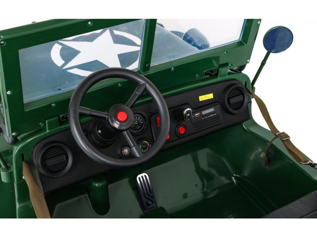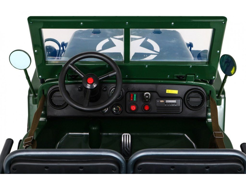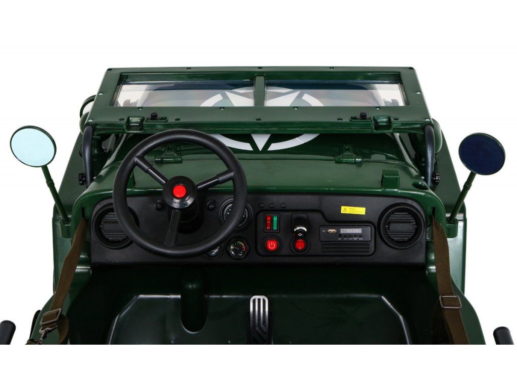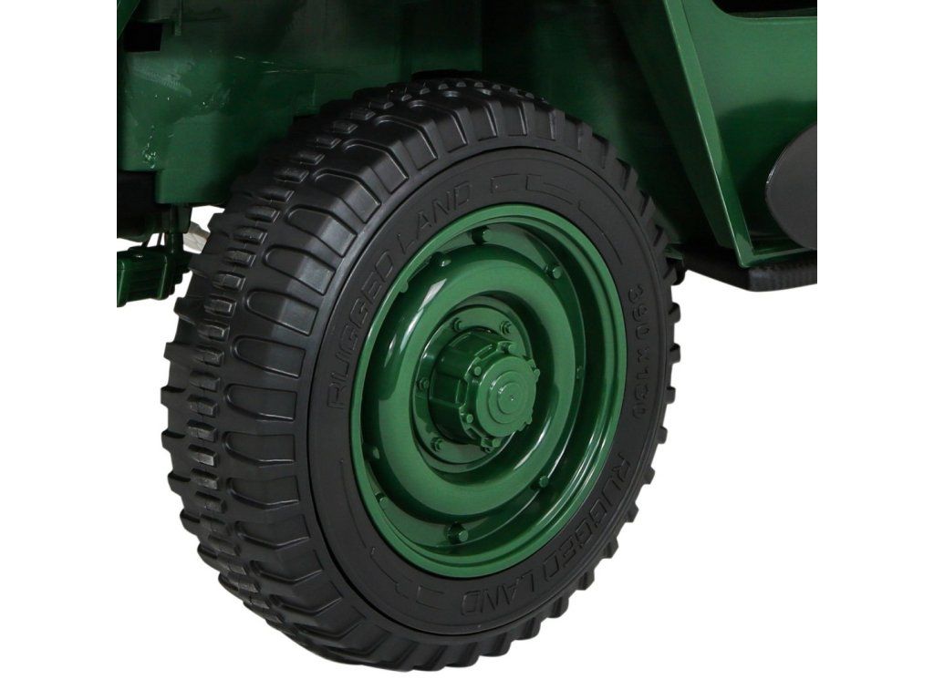 Dětské elektrické autíčko Willys se díky pěnovým Eva kolům a výkonnému motoru i baterii přizpůsobí různým typům povrchů. Díky náhonu na všechna čtyři kola smí dítě vyrazit do pořádného terénu. Vojenské auto Willys má nosnost 60 kg, takže můžete svézt svého kamaráda či sourozence. Cestu jistě zpříjemní zvukové i svítící efekty. Na hudebním panelu můžete využívat vstup Mini Jack, USB, připojení MP3 či Bluetooth.