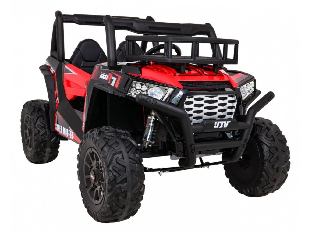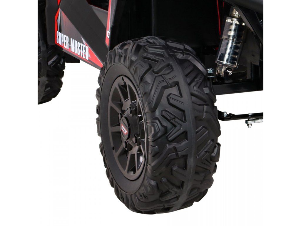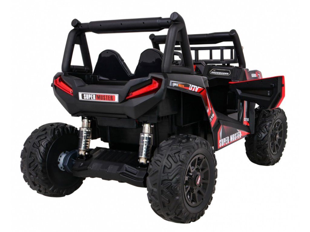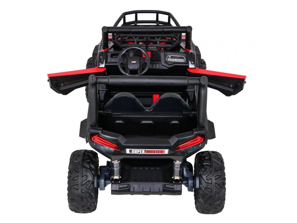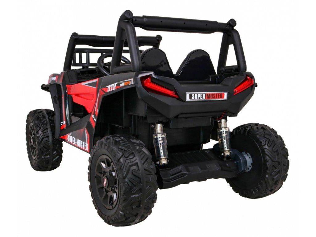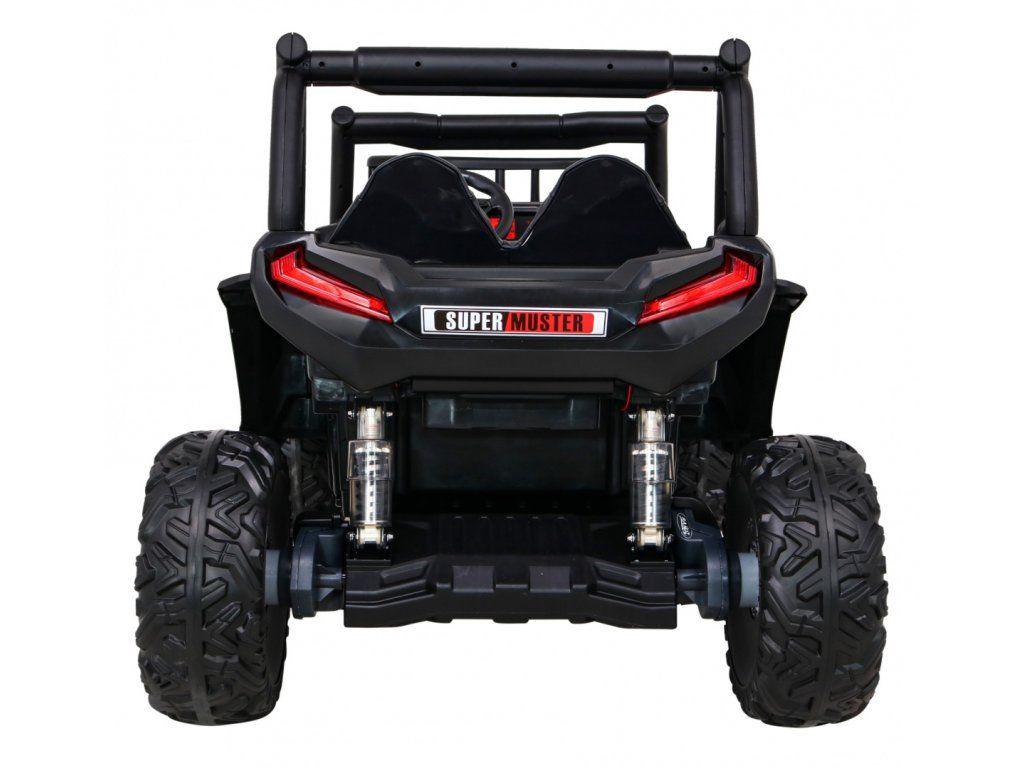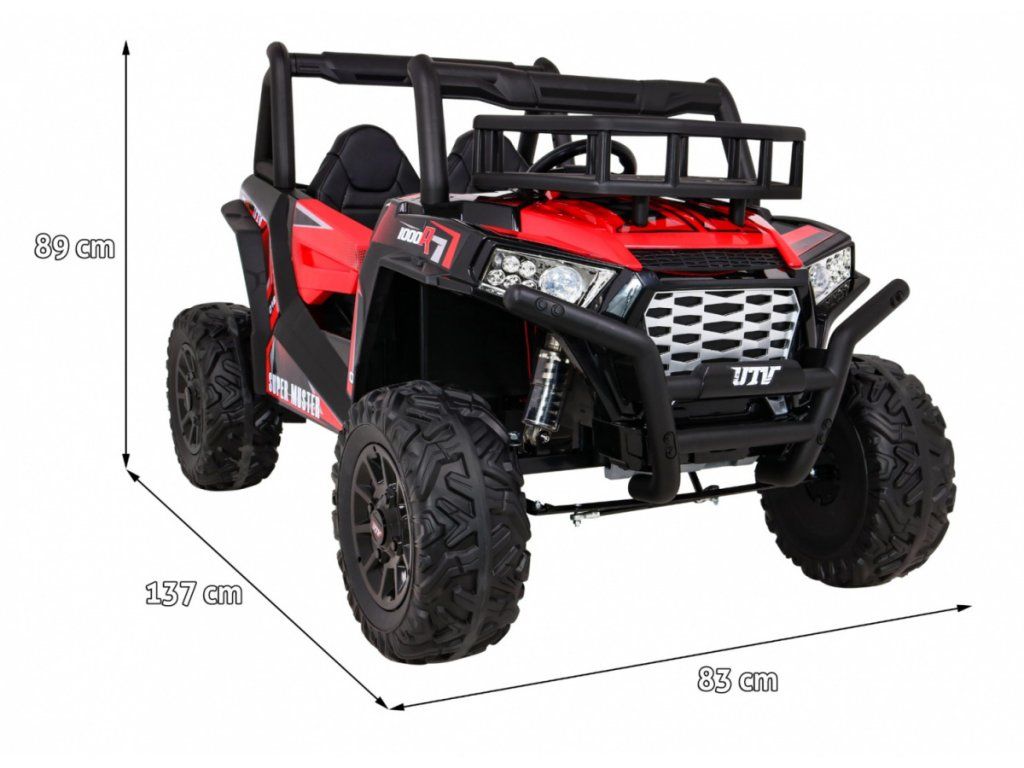 Dětské elektrické auto Buggy UTV se dvěma výkonnými elektrickými motory 200W. Autíčko hravě zvládne jakýkoliv terén. Do sedačky z měkké ekologické kůže se pohodlně posadí i dvě děti, jelikož se Buggy pyšní nosností až do 50 kg.