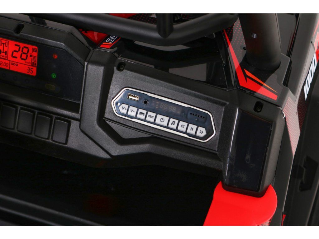 Mezi bohaté vybavení patří zavazadlový prostor v zadní části, přední i zadní LED světla a hudební panel se vstupy MP3, AUX a USB. Při startování vozidla uslyšíte zvuky motoru. O bezpečnou jízdu se postarají bezpečnostní pásy.