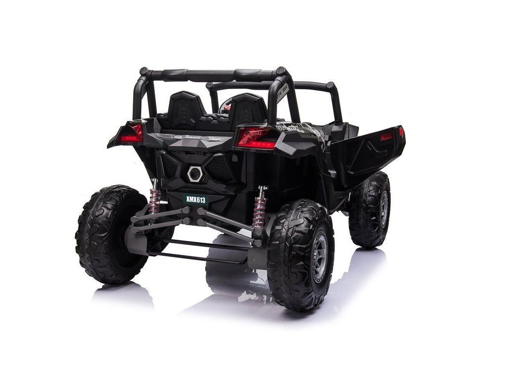 Dětské elektrické auto Buggy UTV-MX přijíždí se čtyřmi výkonnými elektrickými motory 60W a širokými Eva koly, díky čemuž bez pochyb zdolá různé typy terénu. Nosnost autíčka je do 50 kg, takže se do něj posadí i dvě děti.