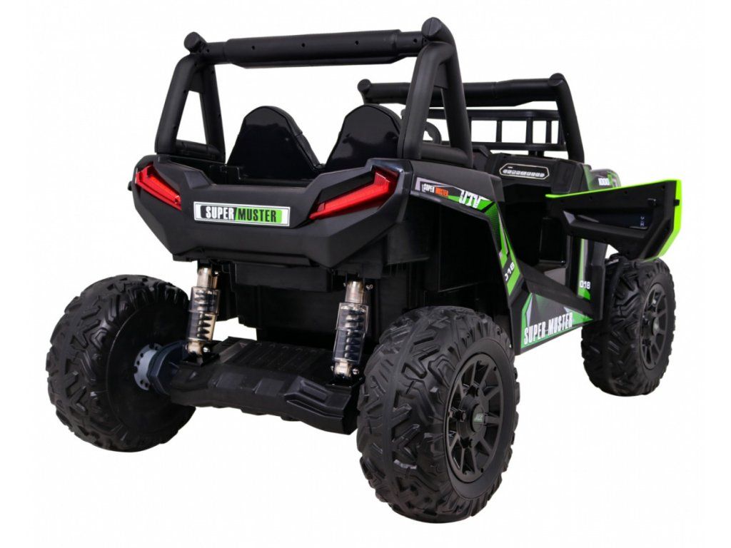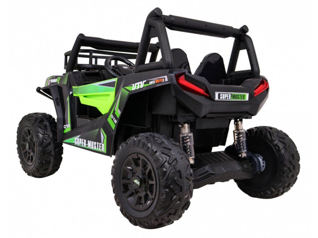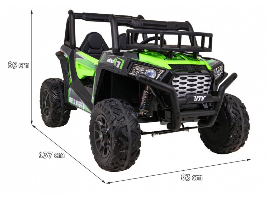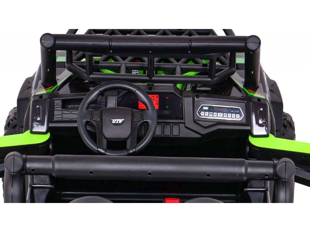 Dětské elektrické auto Buggy UTV se dvěma výkonnými elektrickými motory 200W. Autíčko hravě zvládne jakýkoliv terén. Do sedačky z měkké ekologické kůže se pohodlně posadí i dvě děti, jelikož se Buggy pyšní nosností až do 50 kg.