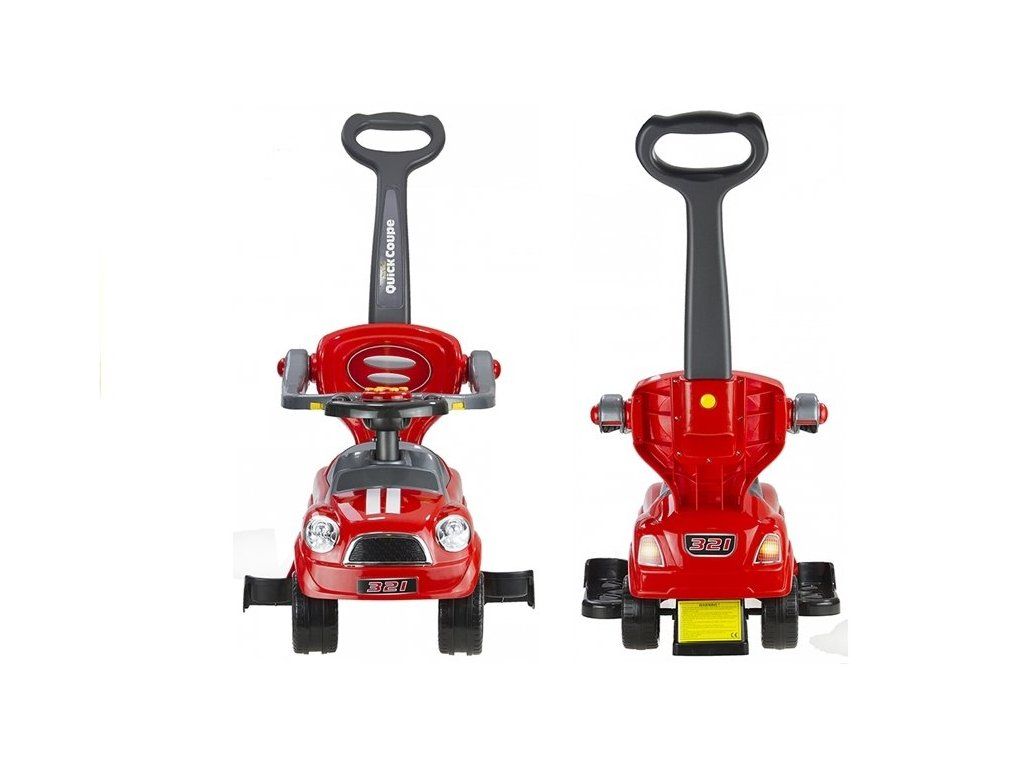 Dětské odrážedlo 3v1, které lze používat jako jezdítko, chodítko i odrážedlo. Odrážedlo je vyrobeno z kvalitního plastového materiálu což umožní dítěti pohybovat se volně a hbitě s nohama ze země. Volant na přední straně výrobku umožní dítěti rozhodnout se, kterým směrem se vydat. Pokud však nechcete, aby Vaše dítě nemělo kontrolu nad svým malým vozidlem, můžete jej sami používat pomocí rukojeti pro rodiče. Důležitou výhodou dětských odrážedlech jsou hudební tlačítka a zvuky, které jsou aktivovány z volantu. Každé z pěti tlačítek skrývá něco zvláštního, což jistě osloví dítě. Jezdítko je určeno jak pro ty nejmenší děti, které umí sedět, tak i pro děti, které se už naučily chodit. Baterie nejsou součástí balení.