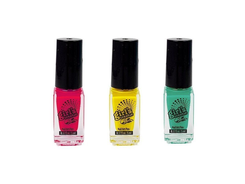 - Laky na nehty - zelený, žlutý a růžový