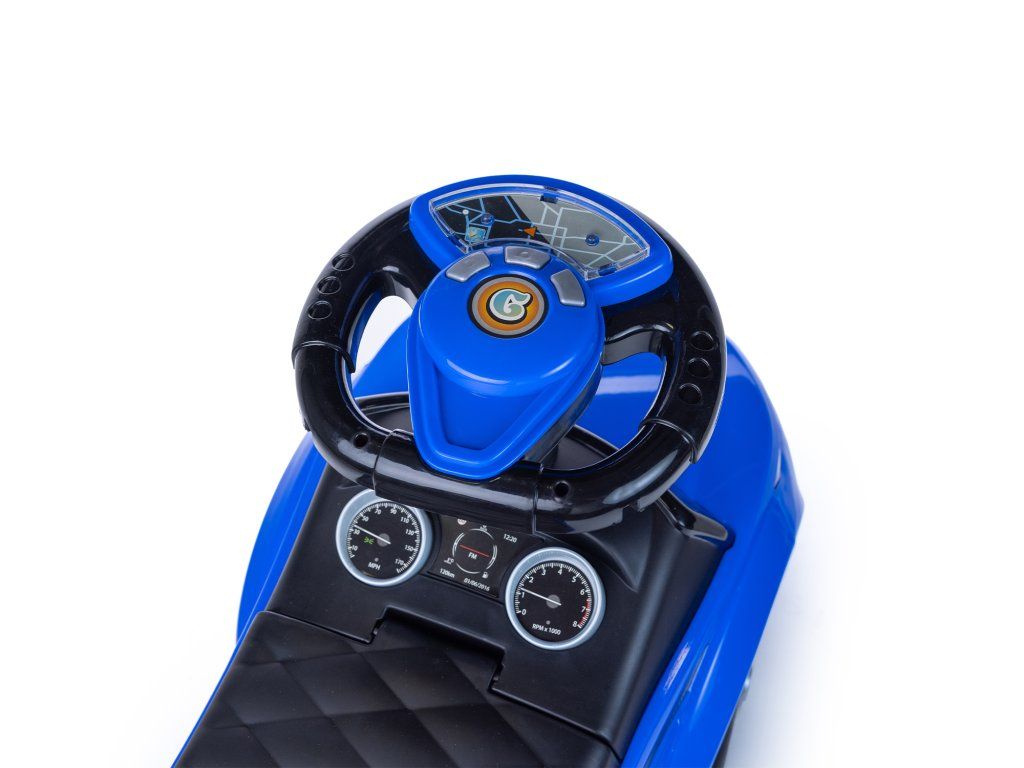 Modré odrážedlo je z velmi lehké konstrukce, což usnadňuje řídit. Ve velké, a především měkké sedačce je úložný prostor pro malé předměty dítěte, například hračky, které si chce vzít s sebou na procházku. Pohodlné opěradlo připevněné k sedadlu zajistí, že si batole při hraní udržuje rovné držení těla a také se cítí pohodlně. Velká, široká kola vám umožní zvolit různé povrchy, díky nimž bude auto jezdit doma i na zahradě. Nosnost je 27 kg, a proto bude určitě sloužit vašemu dítěti po dlouhou dobu.