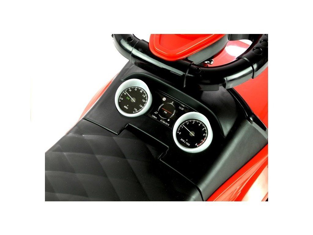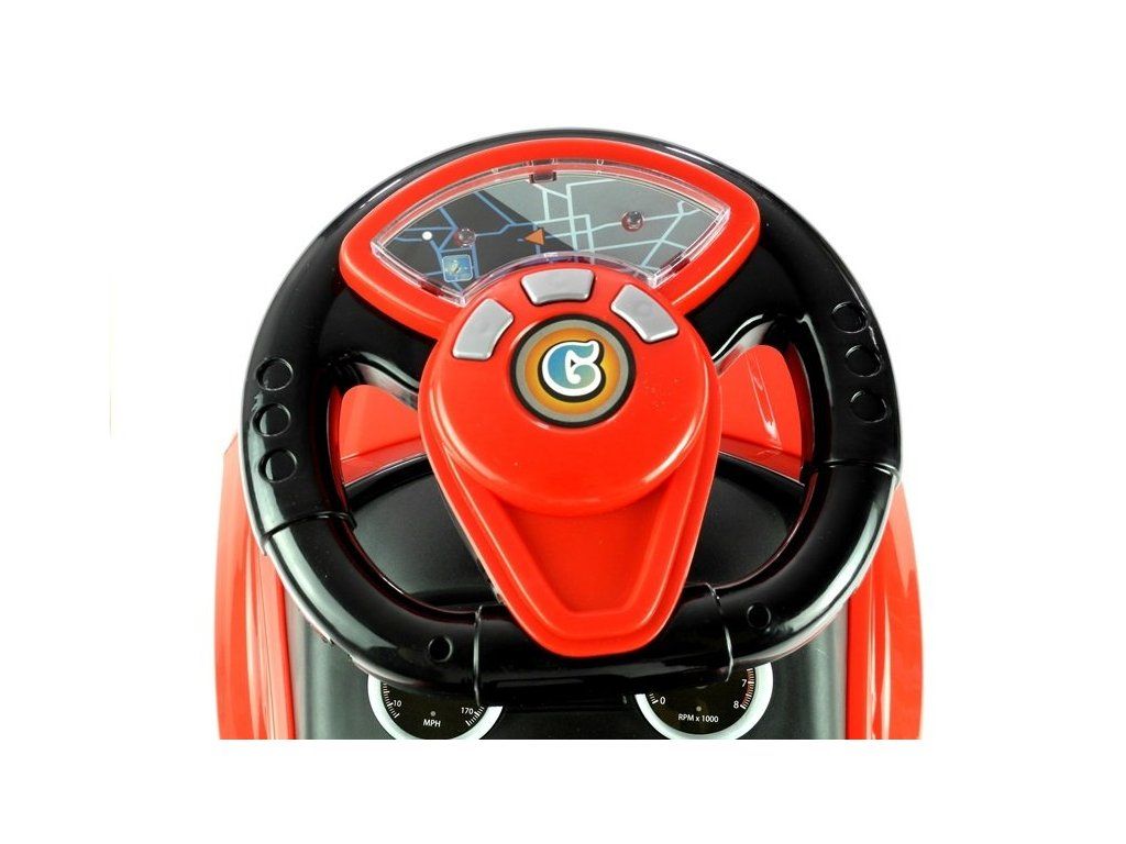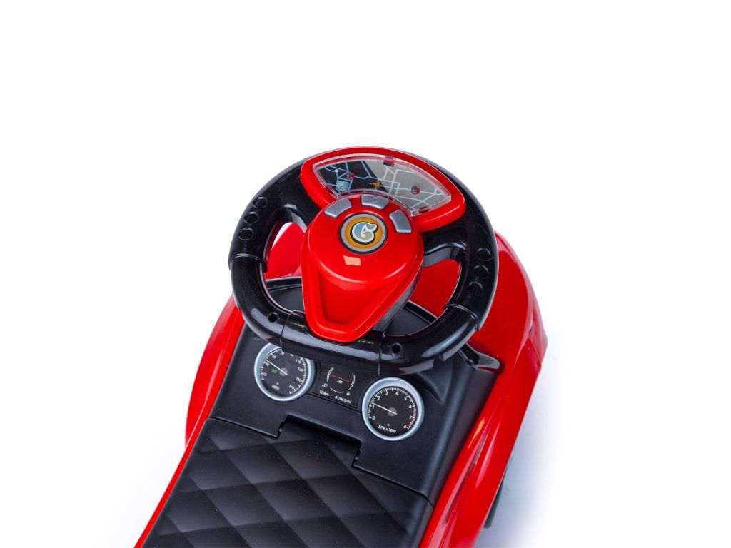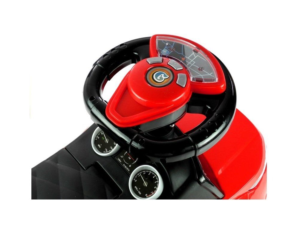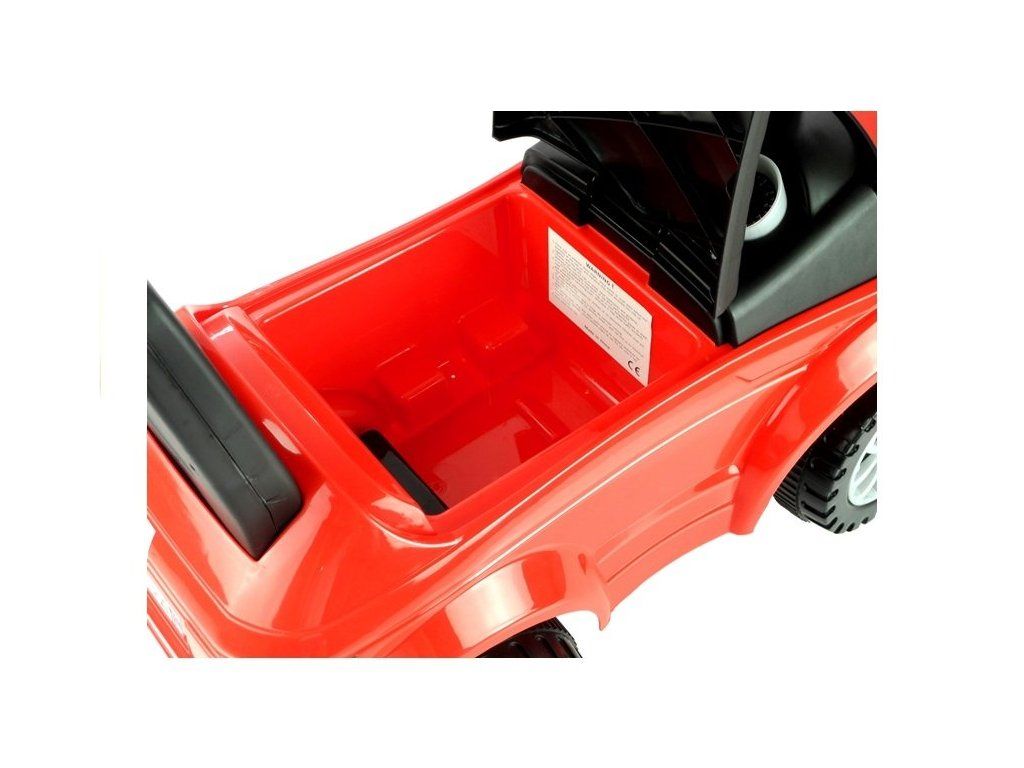Červené odrážedlo je z velmi lehké konstrukce, což usnadňuje řídit. Ve velké, a především měkké sedačce je úložný prostor pro malé předměty dítěte, například hračky, které si chce vzít s sebou na procházku. Pohodlné opěradlo připevněné k sedadlu zajistí, že si batole při hraní udržuje rovné držení těla a také se cítí pohodlně. Velká, široká kola vám umožní zvolit různé povrchy, díky nimž bude auto jezdit doma i na zahradě. Nosnost je 27 kg, a proto bude určitě sloužit vašemu dítěti po dlouhou dobu.