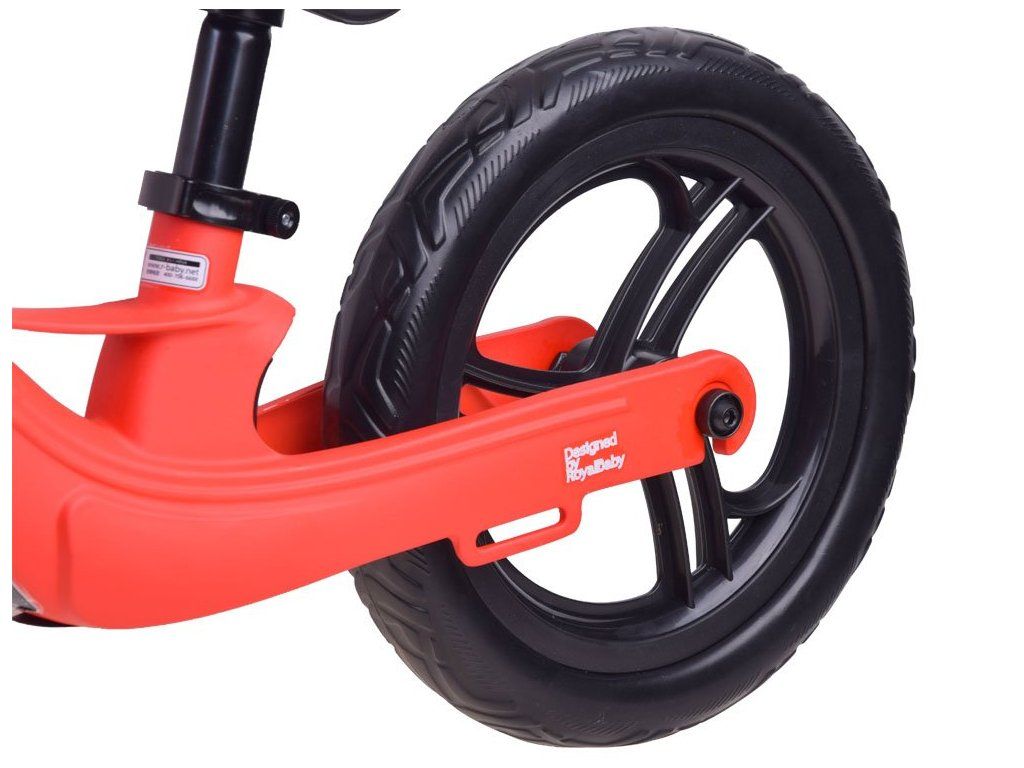 Dětské odrážedlo je namontováno na ultralehkých pěnových kolech, díky kterým je pohyb na něm bezpečný a pohodlný. Velkou výhodou materiálu EVA, ze kterého jsou kola vyrobeny, je jeho vysoká trvanlivost a odolnost proti propíchnutí. Rám odrážedla je vyroben z oceli, díky čemuž je konstrukce opravdu stabilní. Sedadlo je vyrobeno z černé ekologické kůže