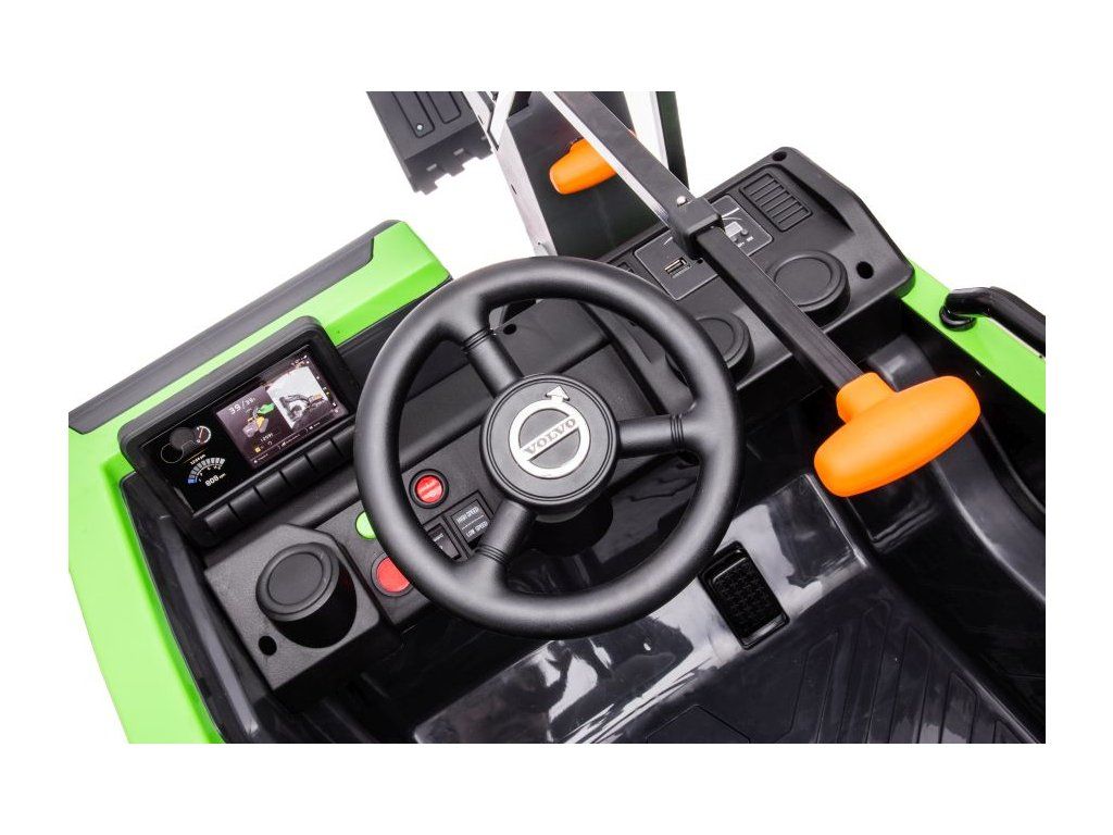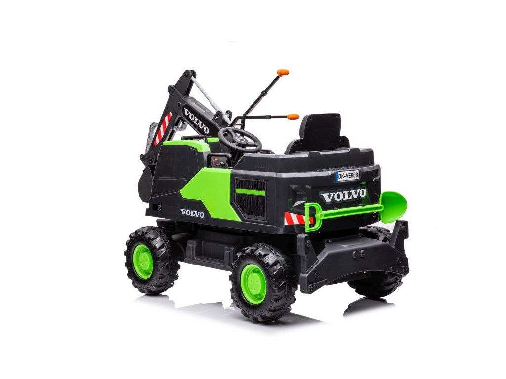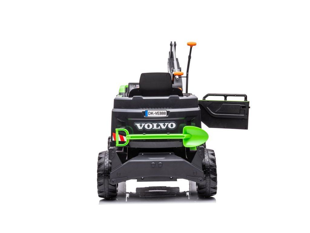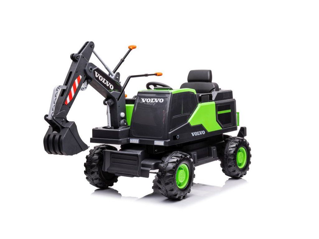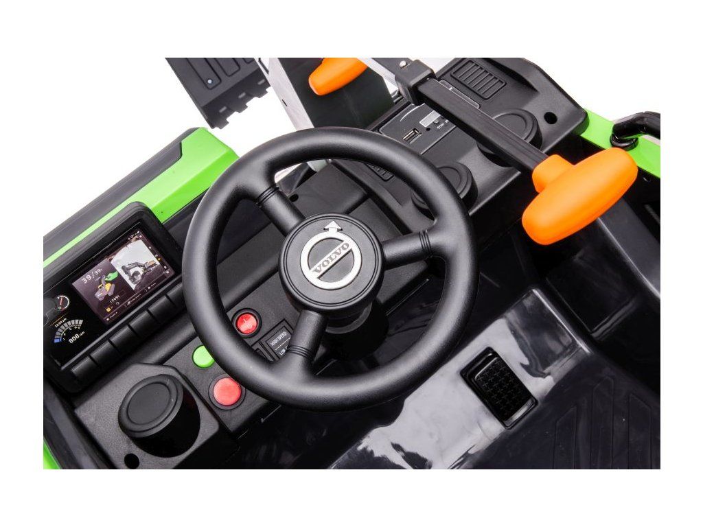Dětský elektrický bagr Volvo přijíždí na EVA kolech, která jsou tichá a při jízdě neruší. Dítě se posadí do pohodlné sedačky z ekologické kůže s bezpečnostními pásy a jízdu jistě zpříjemní hudba, kterou si lze poslechnout z MP3 rádia či propojeného mobilního telefonu s reproduktorem vozítka.