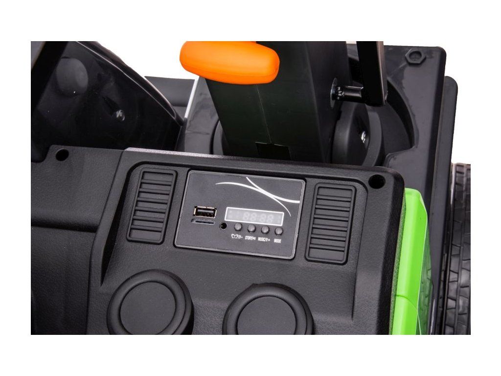 Bagr je vybaven dálkovým ovladačem, který nabízí výběr ze tří rychlostí. Pohybuje se rychlostí od 3 do 5 km/h. Vozítko smí dítě ovládat zcela samostatně, avšak do jízdy smí zasahovat dospělá osoba díky dálkovému ovladači.