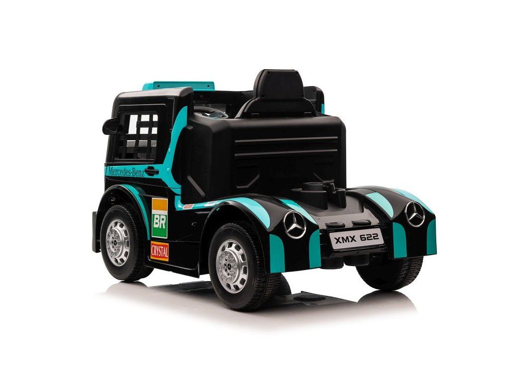 Dětský elektrický kamion Mercedes-Benz Actros s dotykovým LCD displejem a pohodlnou sedačkou z ekologické kůže s bezpečnostními pásy. Dítě smí autíčko ovládat zcela samostatně, avšak do jízdy mohou kdykoliv zasáhnout rodiče pomocí dálkového ovládání. Ovladač je vybaven tlačítky pro změnu směru jízdy ve všech směrech a bezpečnostním tlačítkem STOP, které ihned zastaví vozidlo a vypne všechny jeho funkce.