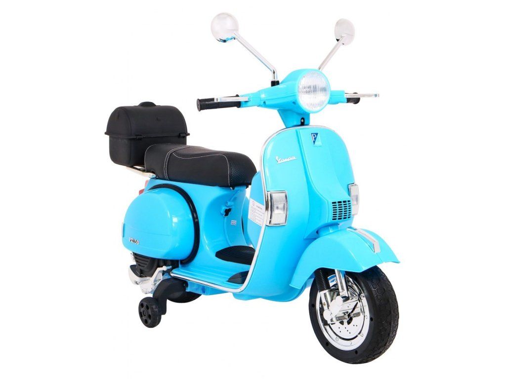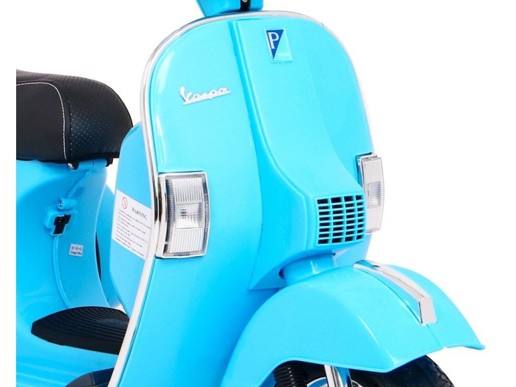 Kdo by neznal skútr značky Vespa? Tento legendární skútr může řídit i Vaše dítě, a to díky tomuto licencovanému modelu. Skútr má kvalitní sedadlo potažené měkkou ekologickou kůží a měkká kola EVA. K tomu všemu krásné přední a zadní LED světla a dokáže přehrávat MP3 soubory, takže si dítě může za jízdy poslechnout svou oblíbenou písničku a zároveň zdokonalovat své řidičské schopnosti.