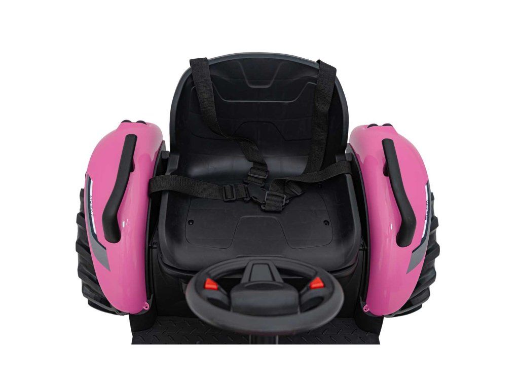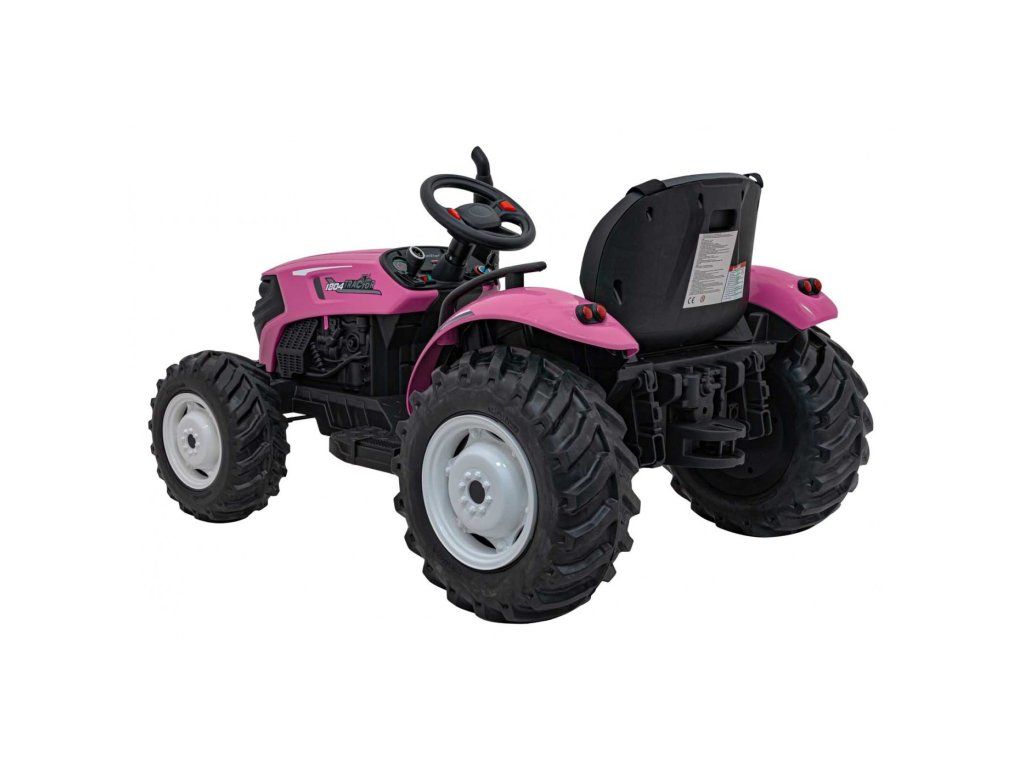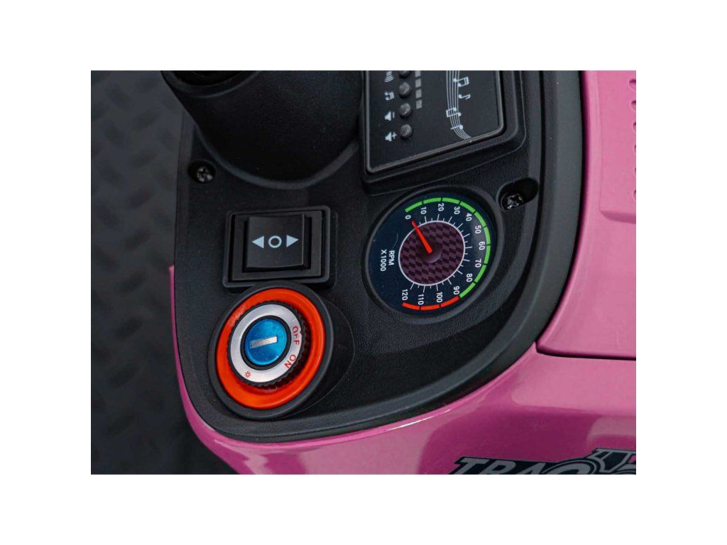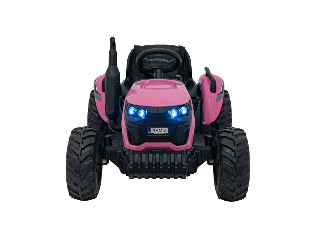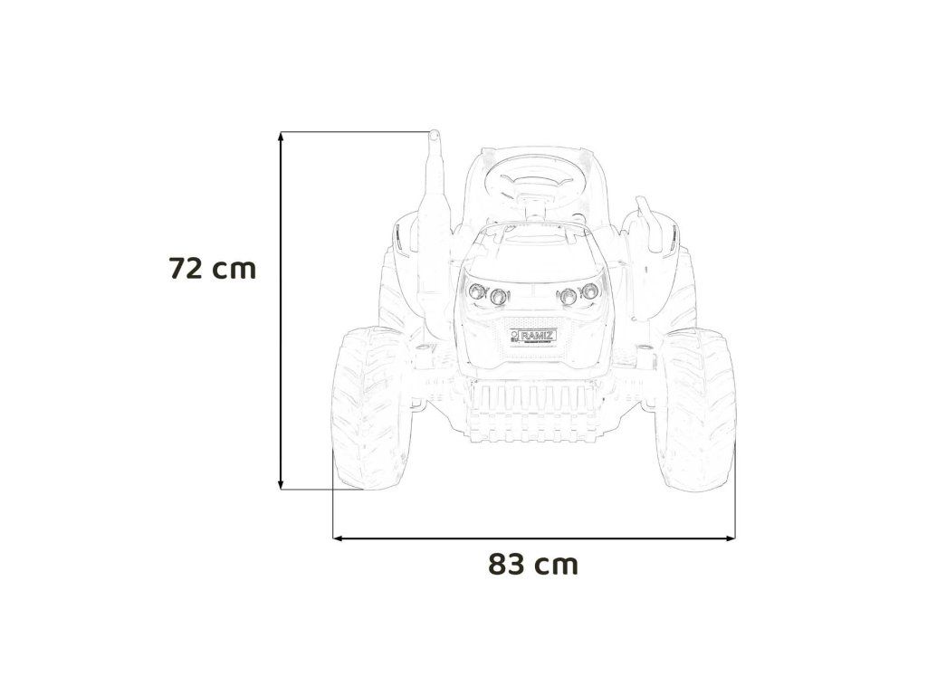 Traktor má pěnová EVA kola a plastové sedadlo. Traktor je také vybaven dálkovým ovládáním 2,4 GHz, pomocí něhož můžete řídit směr a bezpečnost jízdy Vašeho dítěte. Na dálkovým ovladači se nachází bezpečnostní tlačítko STOP, které vozítko zastaví a vypne všechny jeho funkce.