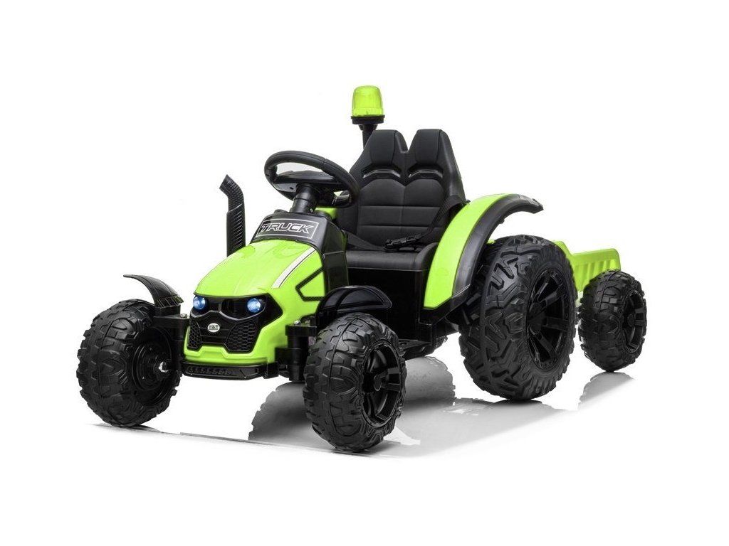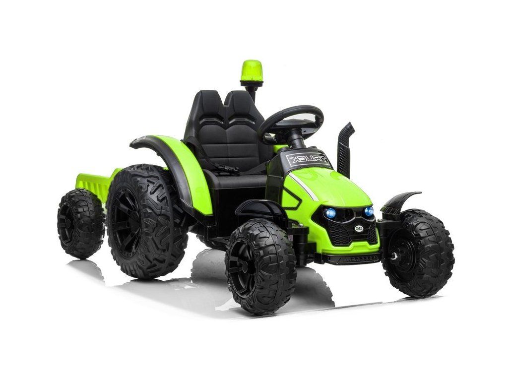 Dětský elektrický traktor s vlečkou je pro všechny děti do 30 kg. Pěnová Eva kola jsou tichá a přizpůsobí se různým typům terénu. Dítě se usadí do pohodlně tvarovaného sedadla z měkké ekologické kůže. Jízdu zpříjemní zvukové a svítící efekty. Dětský traktor je velký, silný a vyrobený z nejkvalitnějšího plastového materiálu v moderním stylu a uspokojí chutě nejmladších motoristických nadšenců.