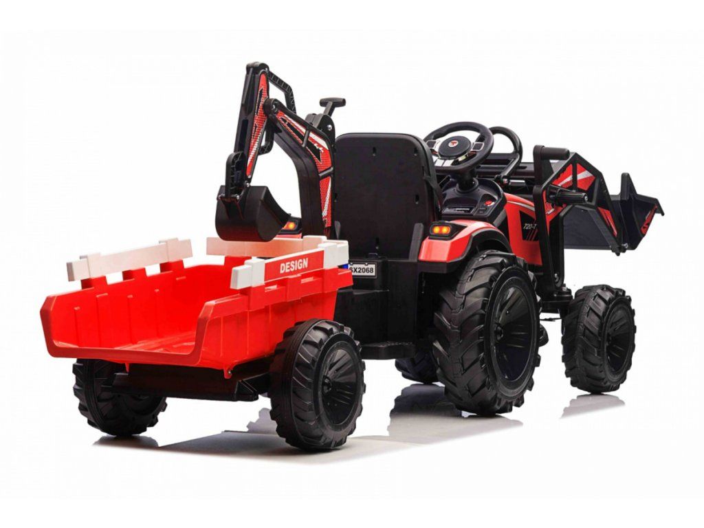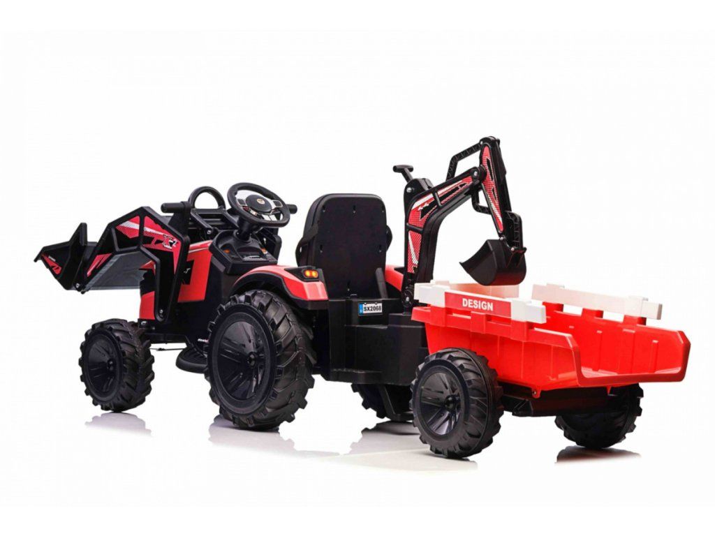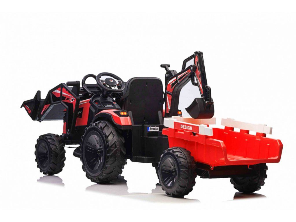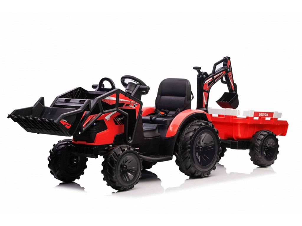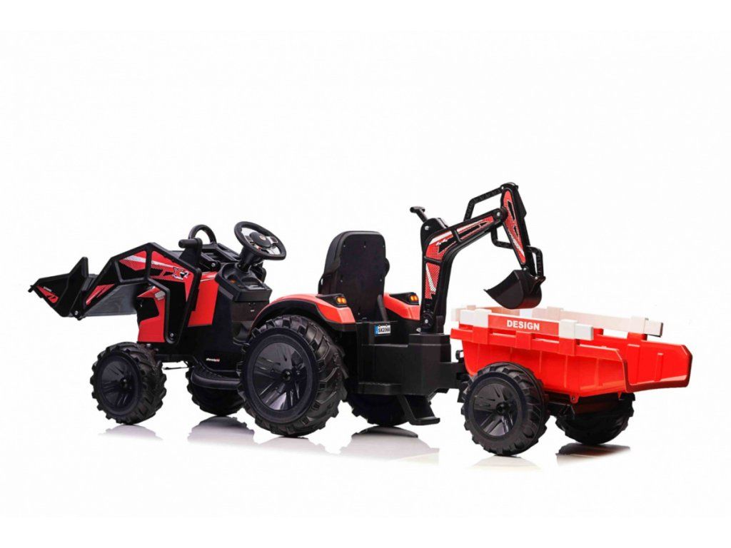 Dětský elektrický traktorbagr s přívěsem červený