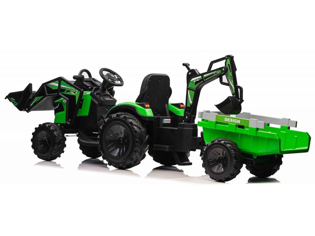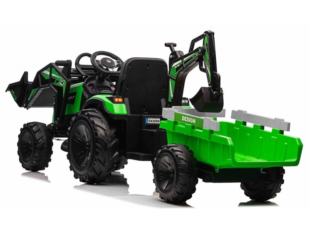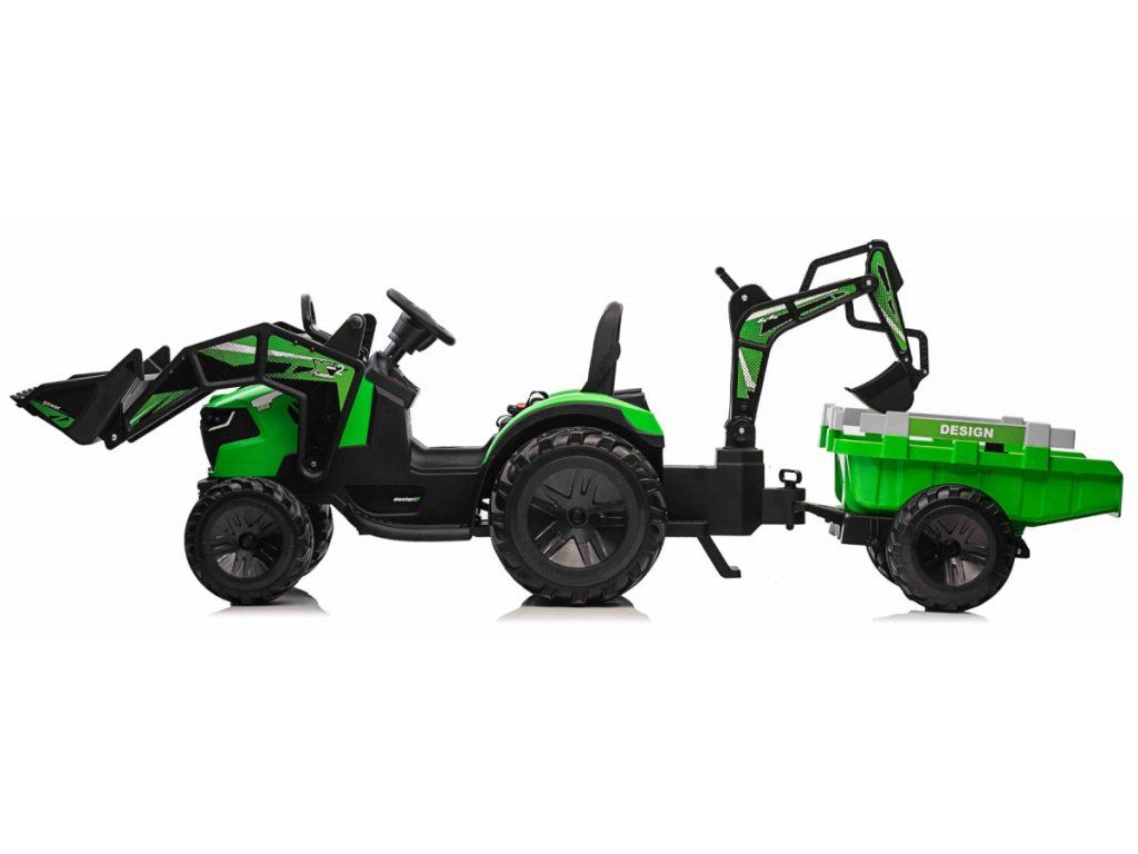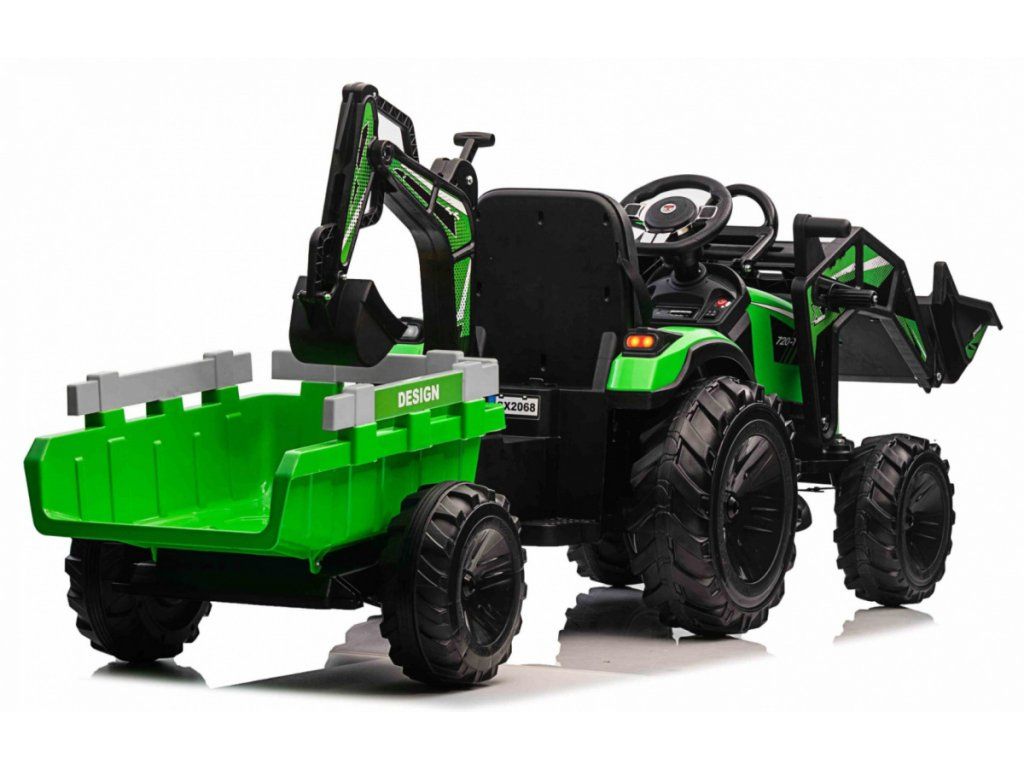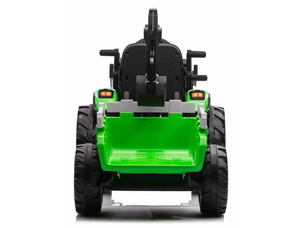 Dětský elektrický traktorbagr s přívěsem zelený