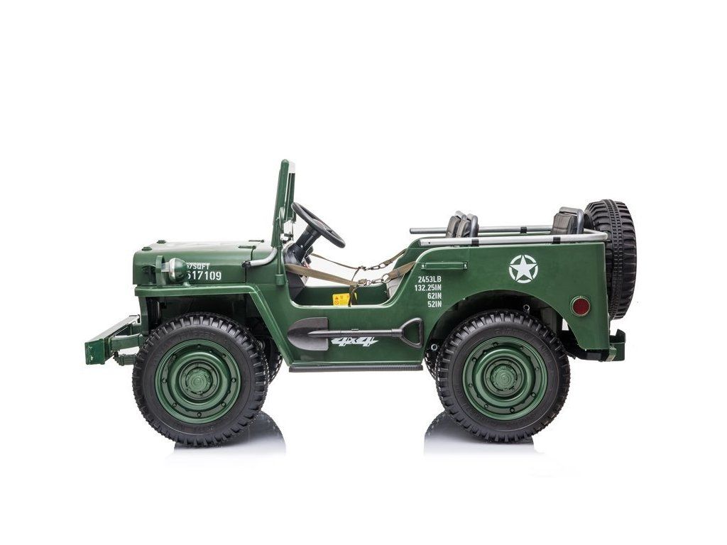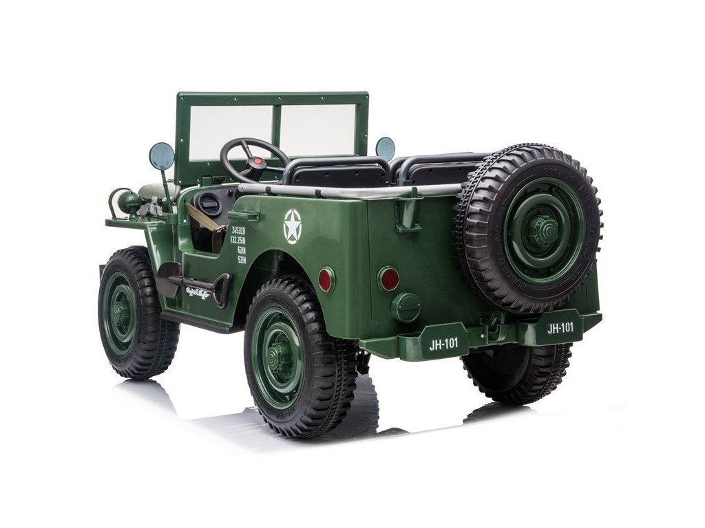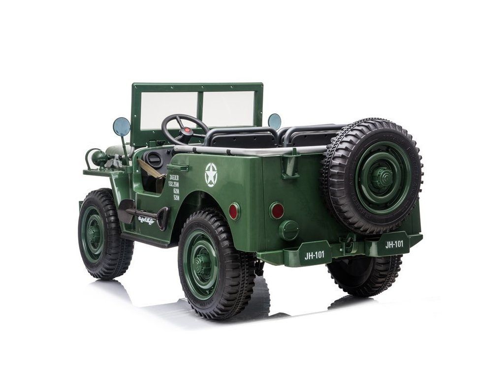 Dětský elektrický vojenský Jeep Willys 4x4 třímístný zelený