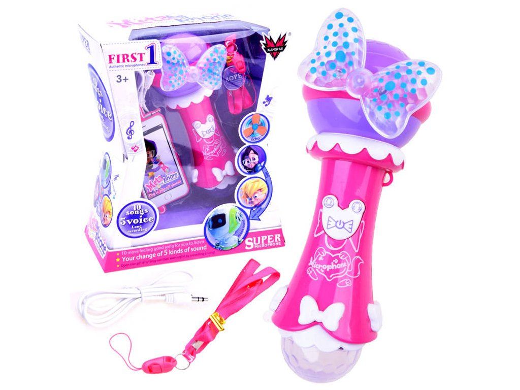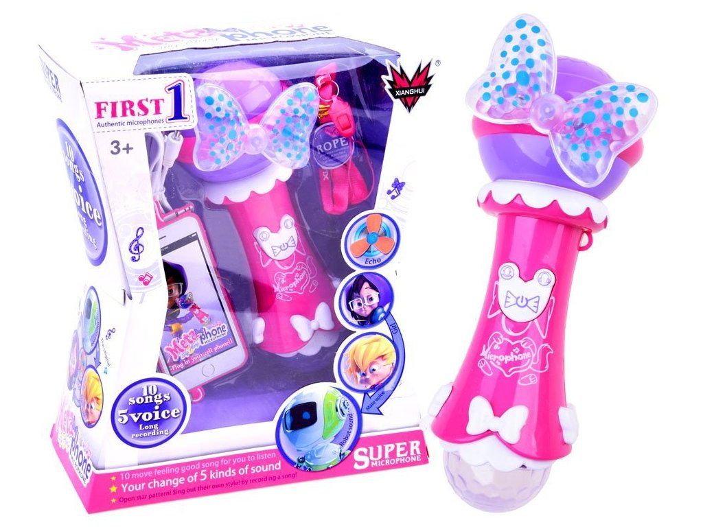 Dětský mikrofon je snadně uchopitelný do rukou, a tak se děti při zpěvu mohou volně pohybovat. Děti si mohou vybrat melodii a také hlas, který pro ně bude nejsympatičtější. Vzhled mikrofonu je doplněný světelnými efekty a už jen doladí dětem jejich pěvecké vystoupení.