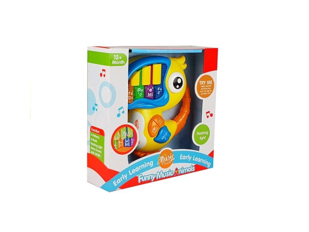 Správný vývoj a úsměv na tváři je velmi důležitý v životě každého dítěte. Různé funkce dětského klavíru, stejně jako jeho barvy a vzory, přimějí dítě začít rozlišovat a učit se nové zvuky, barvy a tvary od útlého věku. Hra na klavír pozitivně ovlivní sluch a zrak vašeho dítěte a povzbudí jeho představivost. Klavír ve tvaru barevného papouška potěší každé dítě, má hudební knoflíky a zábavu doprovází zářící světla tlačítek „DO“, „RE“ a „MI“. Hračka se spouští tlačítkem ON / OFF. Vedle něj je tlačítko „MODE“, které mění režimy zvuků klavíru. Stisknutím kláves můžete poslouchat veselé melodie, zvuky zvířat nebo standardní zvuky klavíru a hrát svou vlastní melodii.