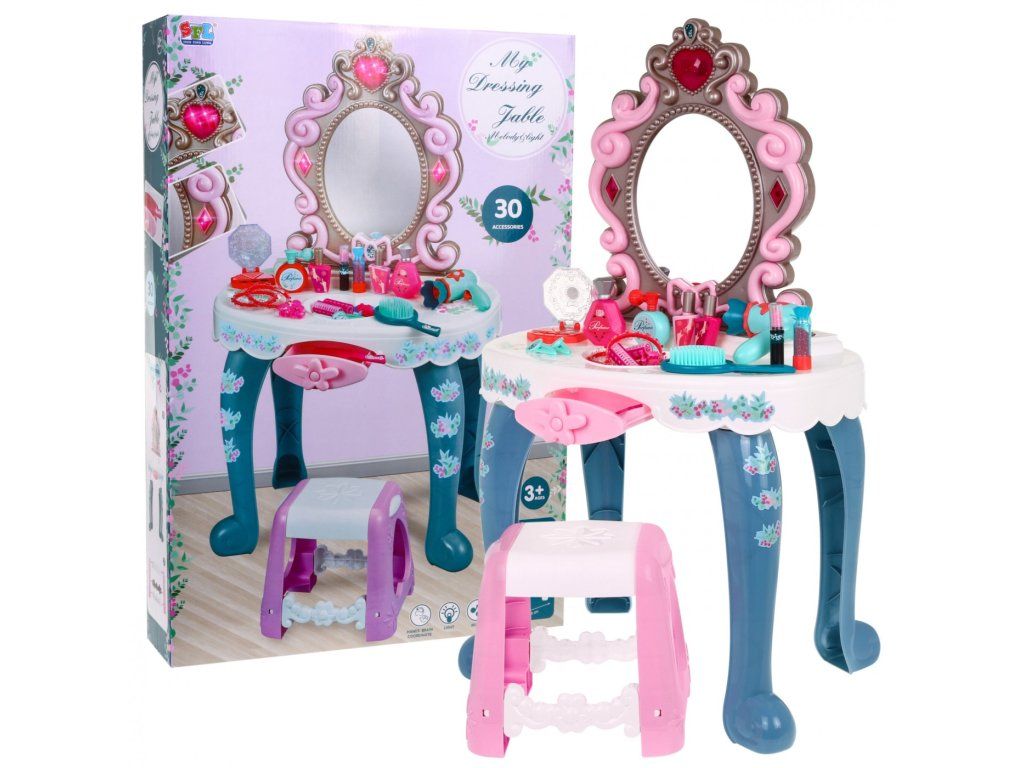 Dětský kosmetický stolek s vybavením modrý