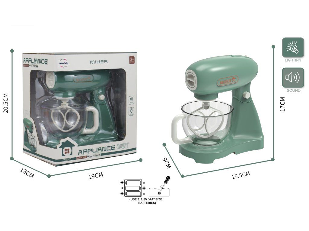Mixér je navržen tak, aby co nejvíce připomínal skutečný spotřebič. Disponuje odnímatelnou nádobou s držadlem, takže děti mohou „připravovat“ své oblíbené dobroty. Hlava mixéru je výklopná, což usnadňuje manipulaci a vkládání misky. O zábavu se postarají světelné efekty a zvuky, které napodobují skutečné mixování. Díky své velikosti je hračka vhodná i pro menší děti od 3 let.