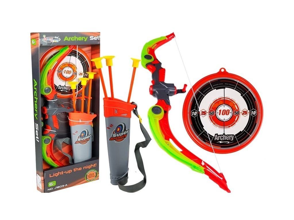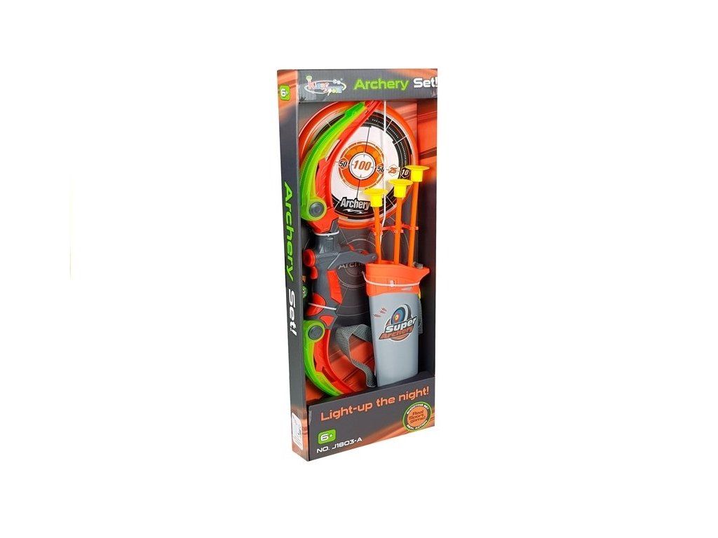 Luk s terčem je perfektní hračka pro všechny děti. Uvnitř balíčku se nachází sportovní luk, 3 šípy a obal na šípy. Štít můžete postavit nebo pověsit na zeď.