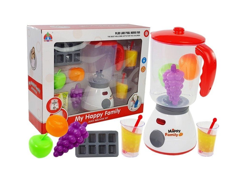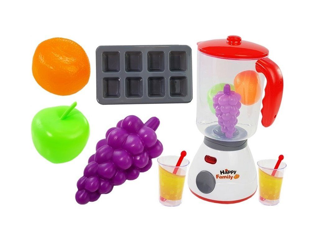 Dětská kuchyňská souprava, která se skládá z mixéru, ovoce, sklenic a formy na ledové kostky. Sada příslušenství vypadá velmi realisticky, což pouze vylepšuje její funkce.