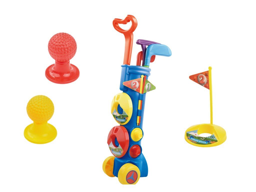 Minigolfový set je skvělá hra pro děti, které rády tráví svůj čas aktivně. Hračka je vybavena vším, co začínající golfista potřebuje. Sada obsahuje golfový vozík na kolečkách, do kterého můžeme uložit a přepravit veškeré potřebné příslušenství pro golfistu.