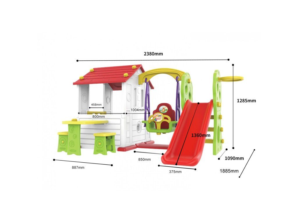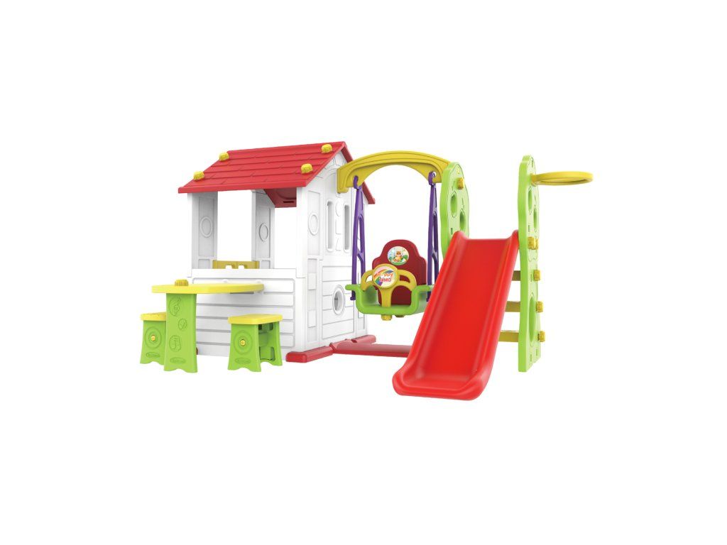 Dětský zahradní domeček 5v1 se skluzavkou a zelenou střechou