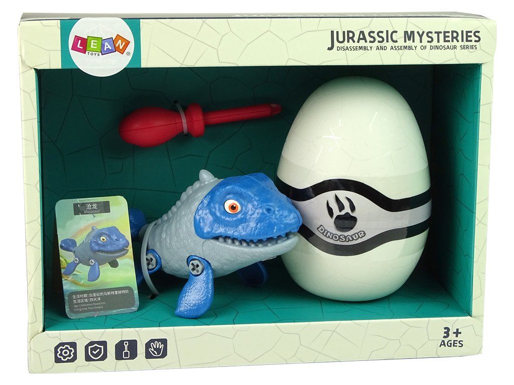 Mosasaur Dinosaur lze rozebrat pomocí šroubováku. Po odšroubování můžete celek schovat do vajíčka. Všechny prvky jsou pohyblivé, což usnadňuje hru.