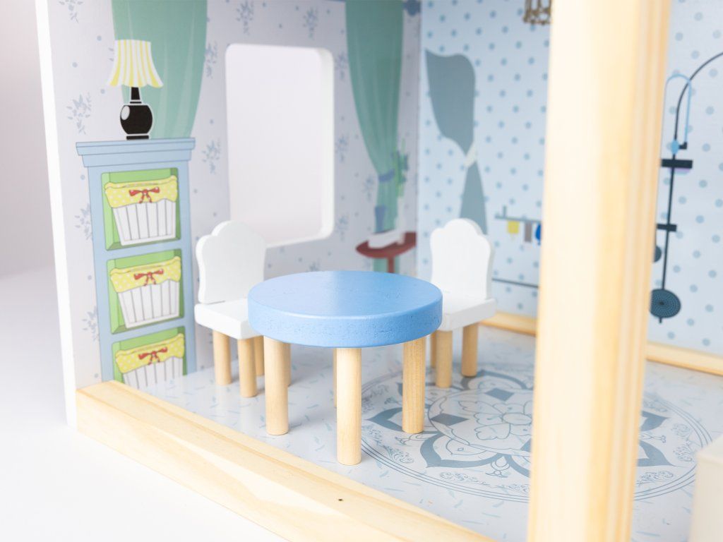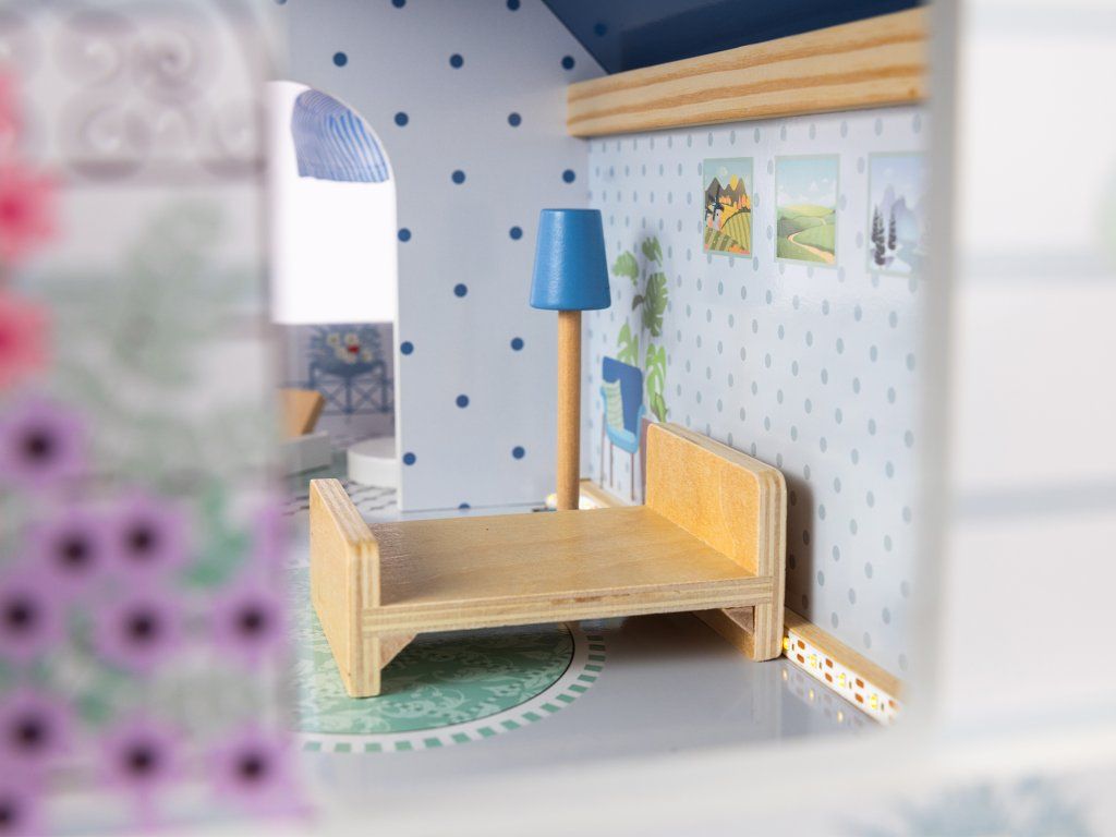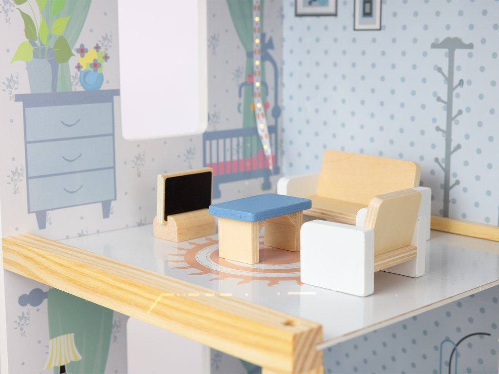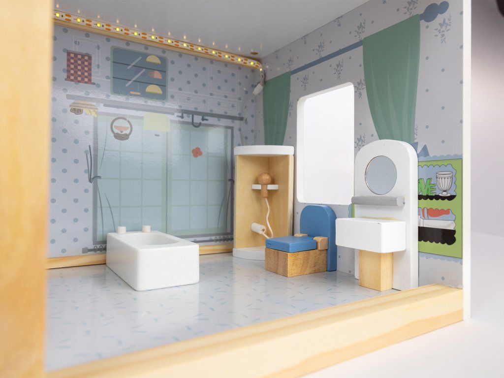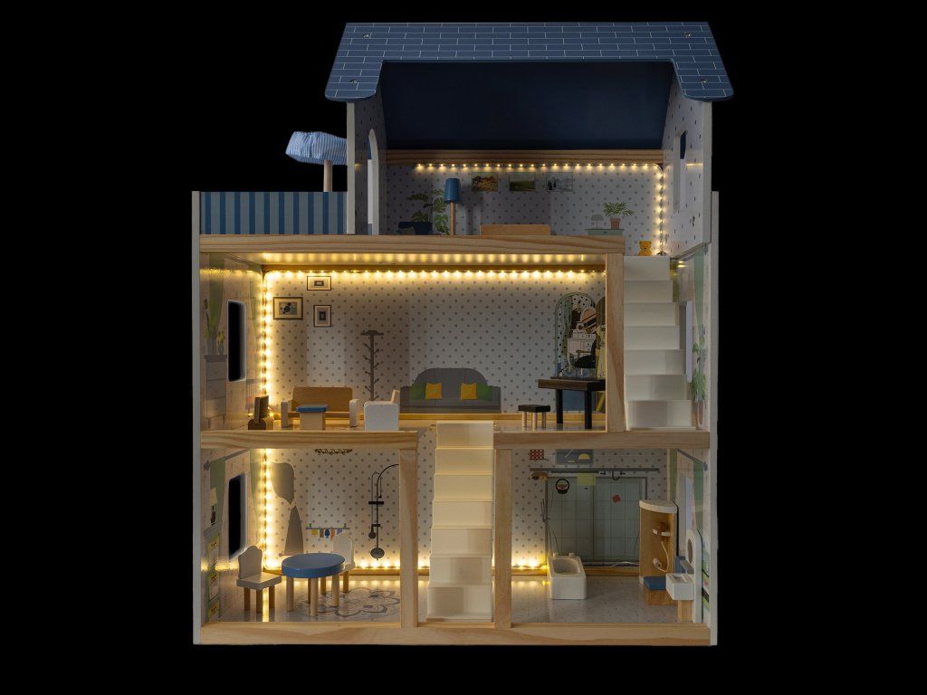 Dřevěný domeček pro panenky Roxana LED XL 78 cm, 15 ks nábytku + LED osvětlení. Ideální dárek pro každou malou princeznu!