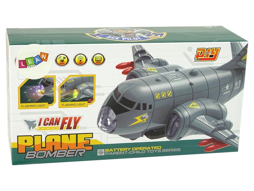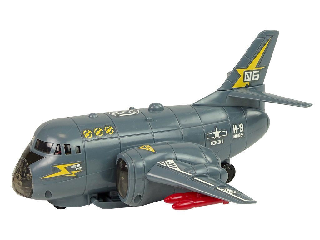 Vojenské letadlo v šedé barvě dokonale odkazuje na vojenské barvy, díky tomu hra vypadá velmi reálně. Na křídlech má červené rakety pro vzdušný boj. Barevné LED diody vycházejí z čela a křídel letadla. Navíc disponuje zvuky vzletu a střelby. Pod vrtulníkem jsou namontována kola, díky kterým se letadlo otáčí.