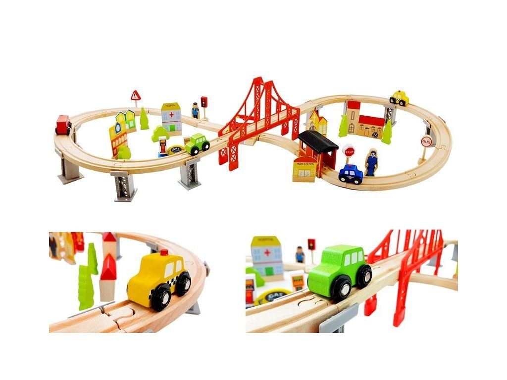 Dřevěná autodráha s příslušenstvím dosahuje velikosti až 110 cm a obsahuje 78 stavebních prvků charakteristických pro celé město. Díky řadě doplňujících prvků hračka zaručuje dlouhou a zajímavou zábavu. V sadě najde batole dekorativní doplňky, jako jsou stromy, dopravní značky, figurky a budovy. Jsme přesvědčeni, že tato ikonická hračka nikdy nevyjde z módy!