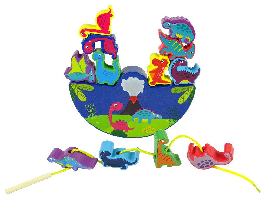 Dřevěná hra je perfektní vzdělávací a arkádová hračka pro vaše dítě. Je čas na výzvu! Sada bloků pro uspořádání zvířat se skládá z 12 dinosaurů a základny ve tvaru půlměsíce. Jak hrát? Batole má za úkol skládat bloky na sebe tak, aby nic nespadlo. Obtížnost je stojan, který s náhlým pohybem začne vyvažovat a všechny bloky mohou spadnout. Hra vyžaduje přesnost, správný úchop a soustředění. Čas na výzvu, vítězem je ten, kdo postaví věž dinosaurů. Hračka je barevná, byla vyrobena z vysoce kvalitního dřeva – prvky jsou dokonale vyleštěny a natřeny ekologickými barvami. Také neobsahuje žádné ostré prvky a hrany, dítě se při hraní neublíží.