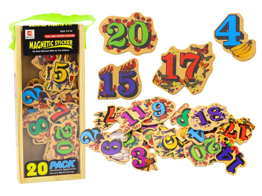 Sada dřevěných magnetů je edukativní hračka, která obsahuje 20 barevných magnetů, každý představující jinou číslici a odpovídající počet zvířat, ovoce nebo předmětů. Magnety jsou vyrobeny z vysoce kvalitního dřeva, což zajišťuje jejich trvanlivost a bezpečnost během hry.