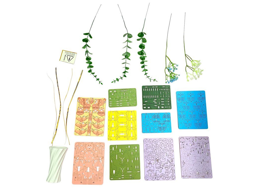 Objevte kouzlo kreativity s dřevěnou 3D skládačkou květinové kytice, která promění jednotlivé dílky v nádhernou dekoraci. Po sestavení získáte elegantní kytici s barevnými květy a listy, doplněnou bílou vázou, která ozdobí každý interiér. Kytice je nejen krásným designovým prvkem, ale i skvělým dárkem pro všechny milovníky tvoření a originálních dekorací.