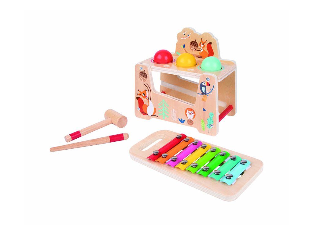 Dřevěná multifunkční zatloukačka s xylofonem a kladívkem 2v1