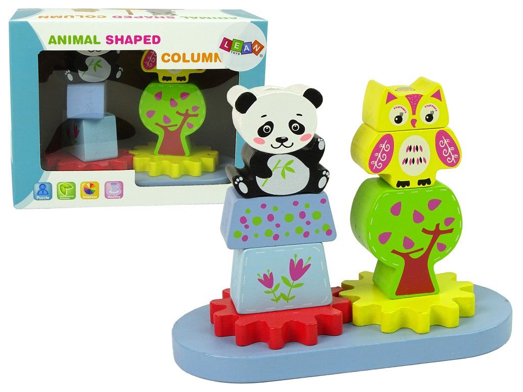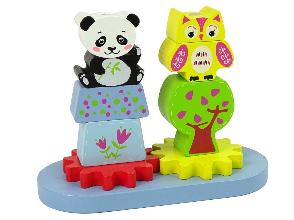 Zkuste spojit a uspořádat dvě zvířátka: pandu a sovu. Batole si může procvičovat manuální zručnost a přesnost pokládáním malých dřevěných kostek různých tvarů na oblouky.