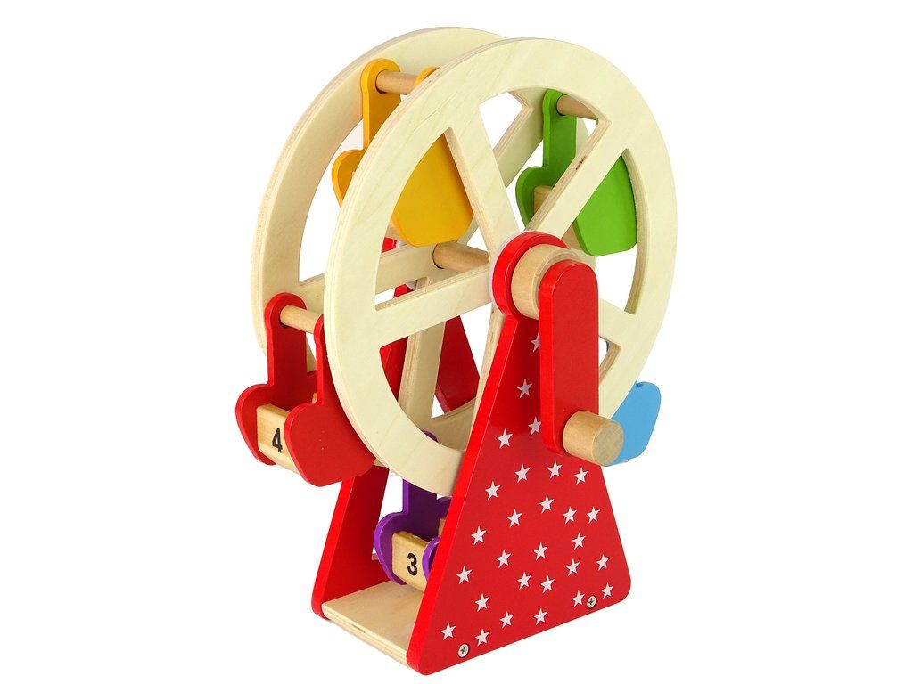 Vezměte své dřevěné figurky zvířat s sebou na projížďku na velkém dřevěném kole. Hračka rozvíjí motorické dovednosti, koordinaci ruka-oko a umožní vám pozorovat, co se stane, když otočíte kolo - posloupnost příčin a následků.