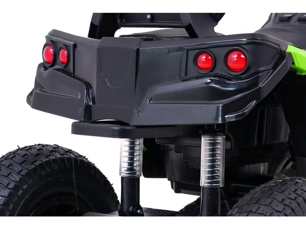 Dětská čtyřkolka ATV přijíždí s výkonným elektrickým motorem. Je určena pro všechny děti s nosností do 30 kg. Gumová nafukovací kola se přizpůsobí různým typům terénu a zvládnou i nerovný povrch. Dítě se posadí do pohodlně tvarovaného sedadla z ekologické kůže a na cestu si posvítí předními i zadními LED světly.