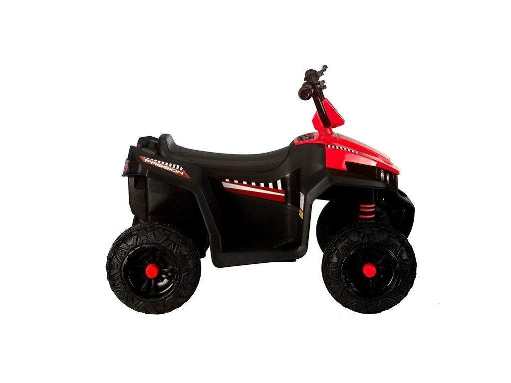 Miniaturní verze čtyřkolky má desítky výhod – představíme Vám několik z nich. Konstrukce vozidla je myšlenka v nejmenším palci, o čemž svědčí ergonomický tvar volantu v kombinaci s úchyty, pohodlné sedadlo potažené měkkou kůží, stejně jako široké stupačky, zaručující komfort a pohodlí za všech podmínek. Jízda na červené čtyřkolce S601, každé batole se může cítit jako řidič skutečného terénního vozidla. Tyto pocity jsou umocněny napodobeninami různých indikátorů umístěných na malém kokpitu, jakož i přepínači a tlačítky, které aktivují zvuky. Zaručené emoce!