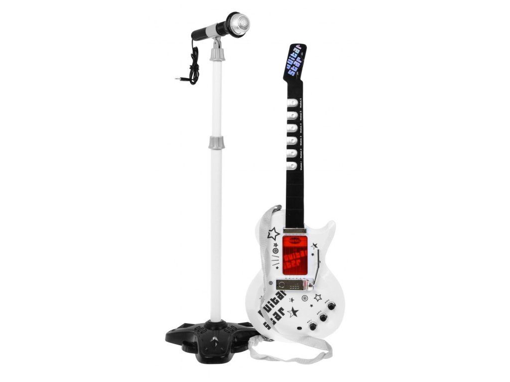 Dětská elektrická kytara s mikrofonem bílá